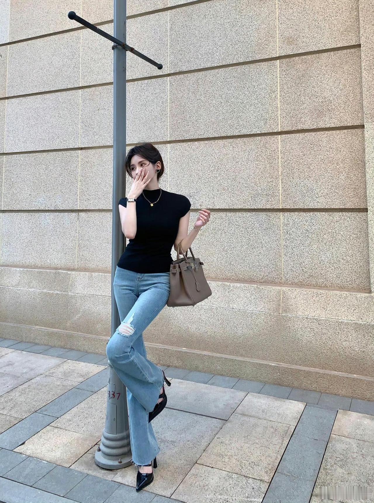 什么样的女生会让人觉得很有魅力?优雅街拍,时尚穿搭,蓝花手袋,都市风情