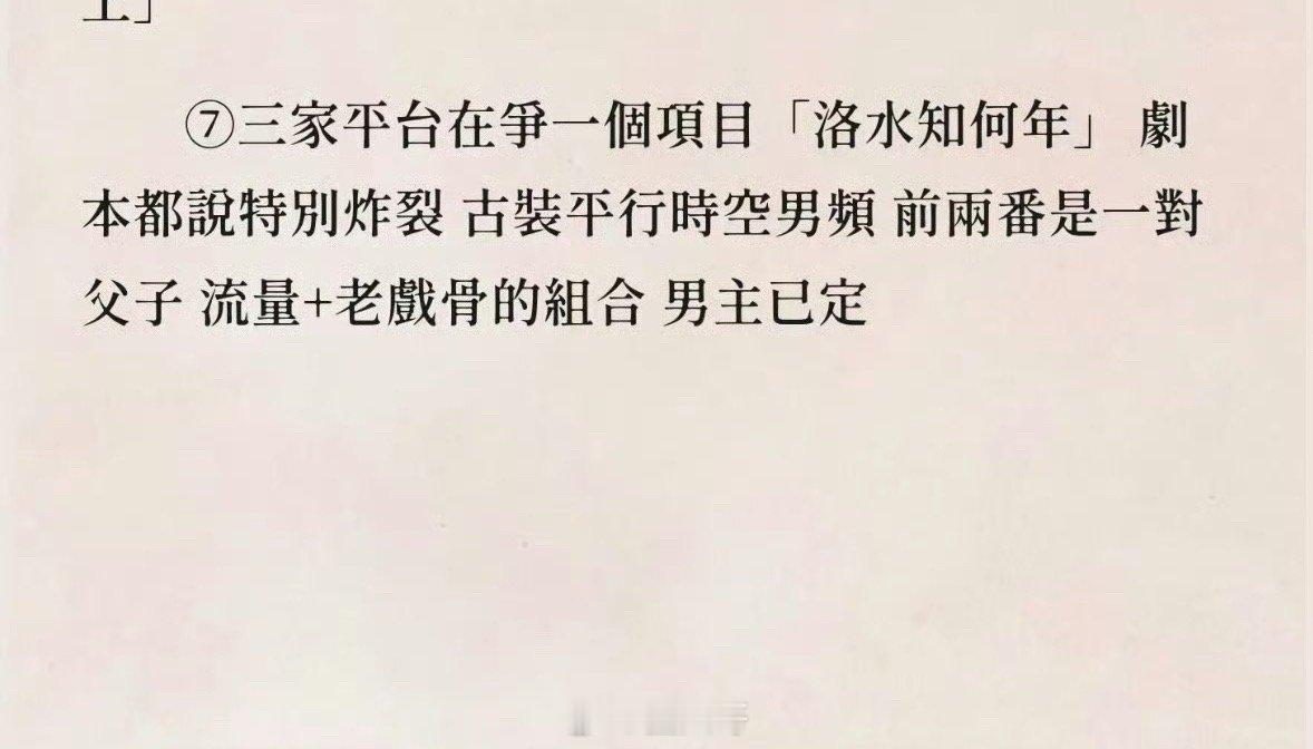 哇塞,王鹤棣在男频赛道的排面拉满了!据说顶级大ip《洛水知何年》正在筹备中,男主已定王鹤棣,这部剧的题材是古装平行时空男频,流量和老戏骨的组合,侯燥开机啦”