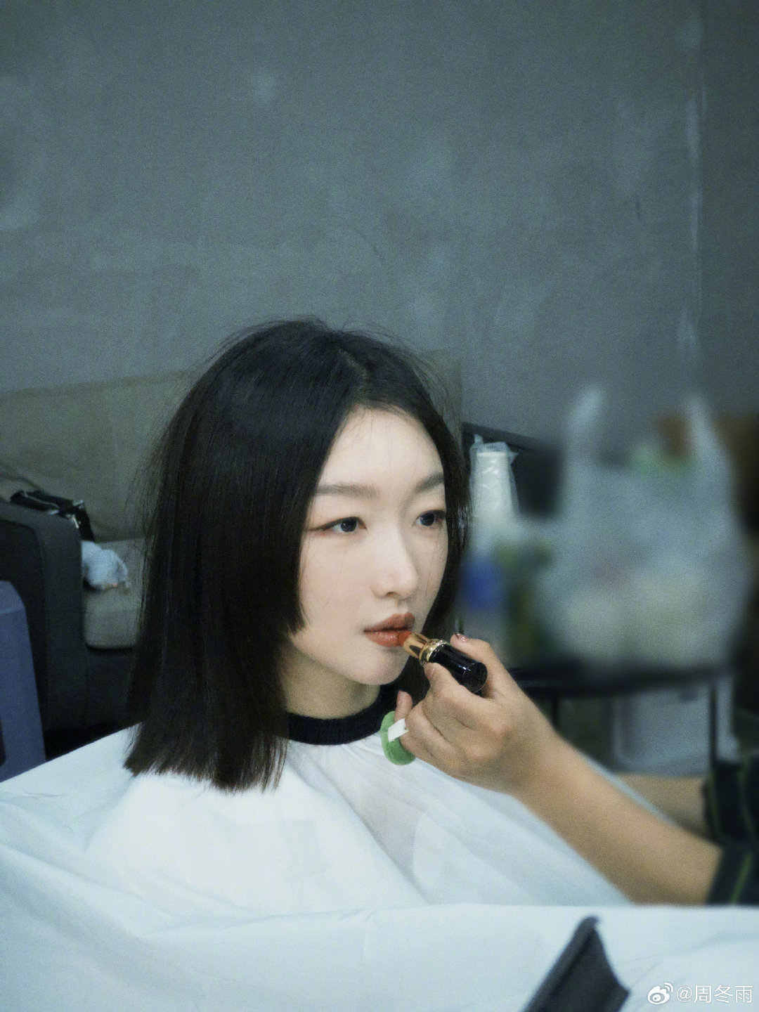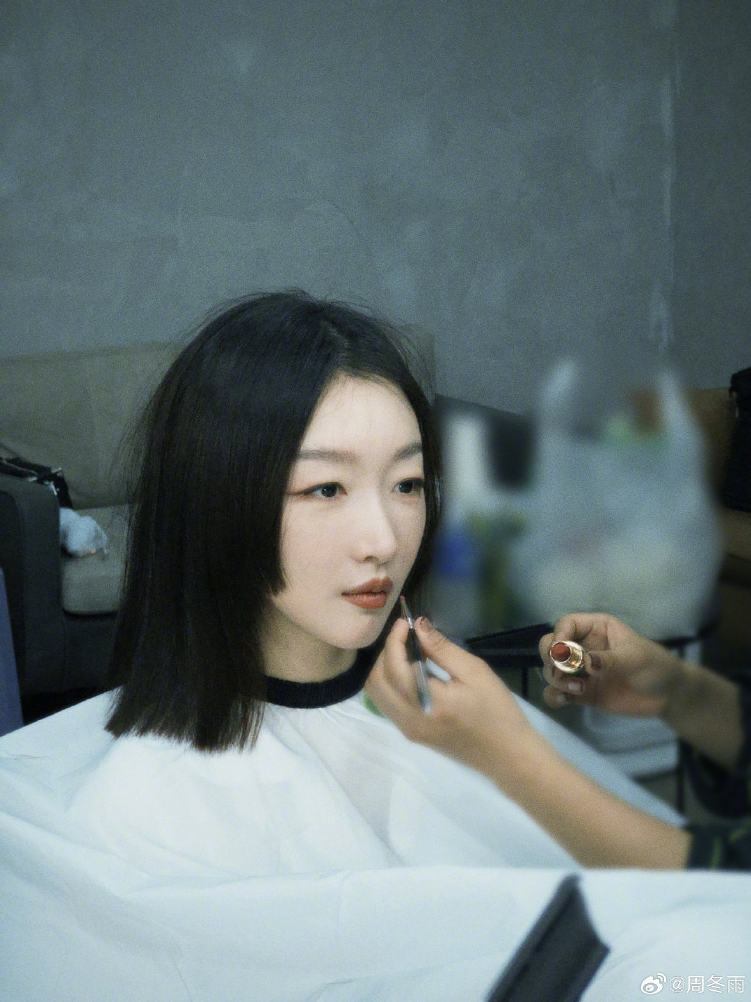 周冬雨短发公主切!周冬雨晒公主切造型,并配文:“冬 冬冬 ”。