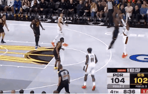虎扑11月22日讯NBA杯小组赛,开拓者对阵勇士的比赛正在进行中。