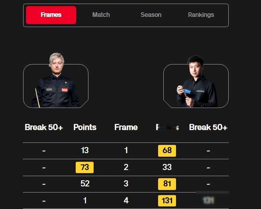 3-1冲冠,131-1,赵心童状态极其火爆,金球赛强势领先罗伯逊 凌晨的比赛还在