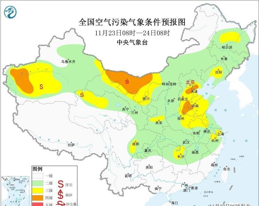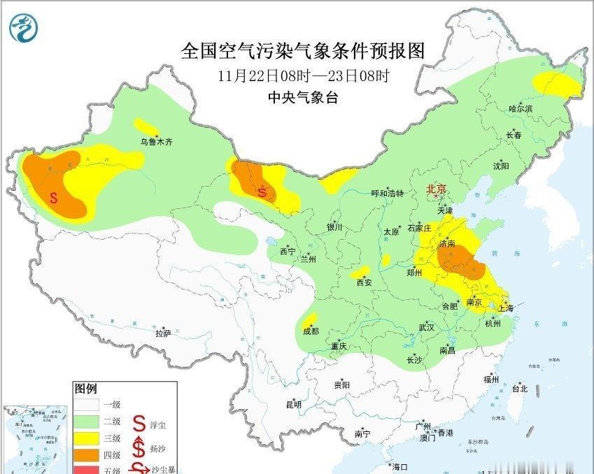 【雾 霾 沙尘】今晨在华东一带出现了雾和霾,江苏安徽等地是雾和霾混杂。江苏射阳和浙江丽水今晨能见度不足200米,出现了强浓雾。安徽滁州出现浓雾。山东安徽江苏等地空气质量还有轻度-中度污染,山东临沂和江苏宿迁出现重污染,对应有霾。 今明两天在地面高压后部偏南风推动下,黄淮一带霾可能向北传输到京津冀。后天冷空气东移南下,霾向南传输减弱。另外冷空气逐渐东移过程中,大风可能吹起沙尘,导致新疆南部、内蒙古西部、青海北部、甘肃西部、宁夏、陕西北部等地的部分地区有扬沙或浮尘天气。