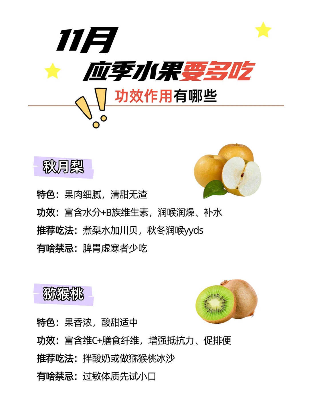 宝子速藏!11月🔟种应季果攻略:橘子、秋月梨等鲜货,标清特色、营养+吃法,禁忌也列明!烤橘子、煮梨水超适配秋冬,附选果技巧,润燥解馋不踩雷~ 💡小贴士:选果挑沉甸甸、果香浓的,新鲜度拉满!