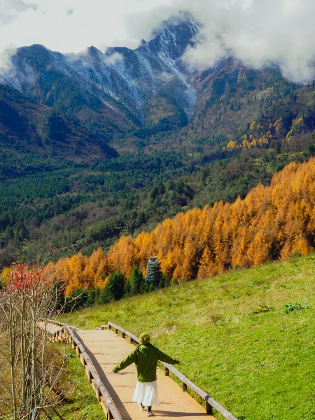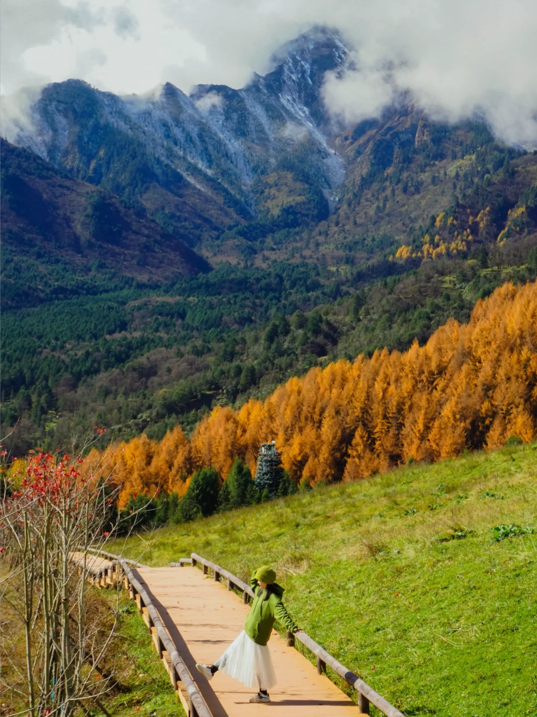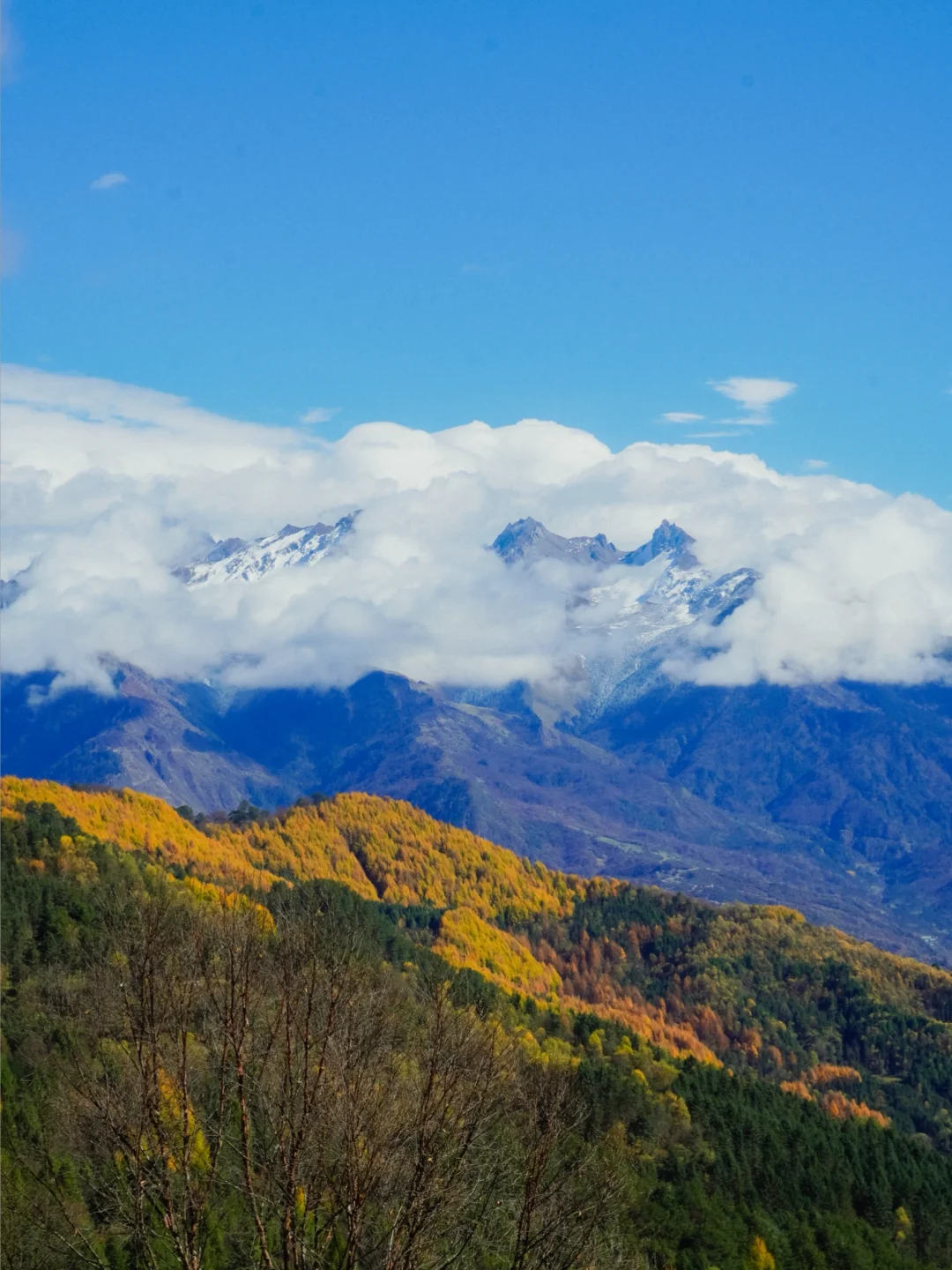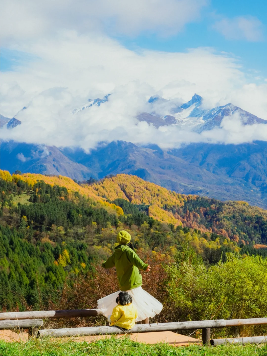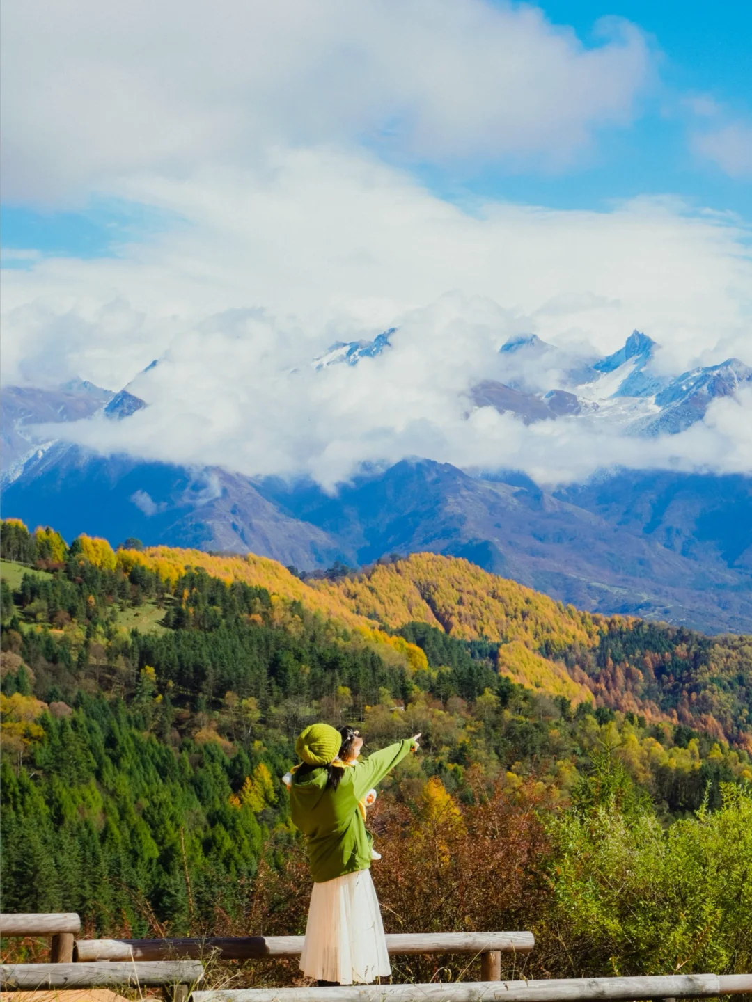 雪山🏔️近在咫尺,彩林🍂漫山蔓延