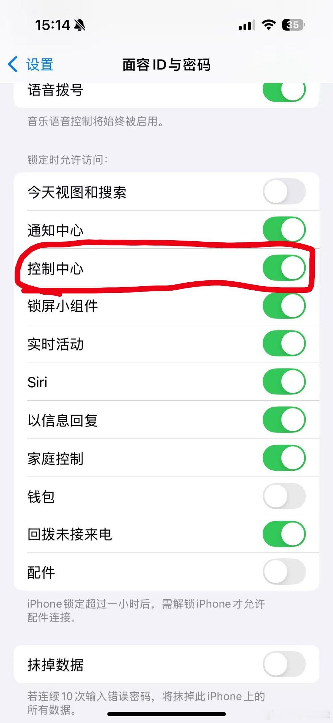 这么说确实不安全啊要是这个没有关闭,锁屏状态下,控制中心里的功能居然也能用