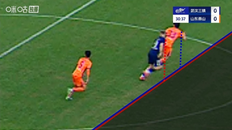 直播吧11月22日讯中超第30轮,武汉三镇主场对阵山东泰山,比赛第30分钟,图多列接长传直入禁区抢射破门,裁判经VAR确认判越位。