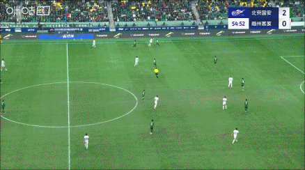比赛第56分钟,张玉宁破门!国安3-0领先梅州