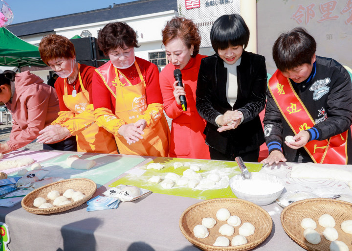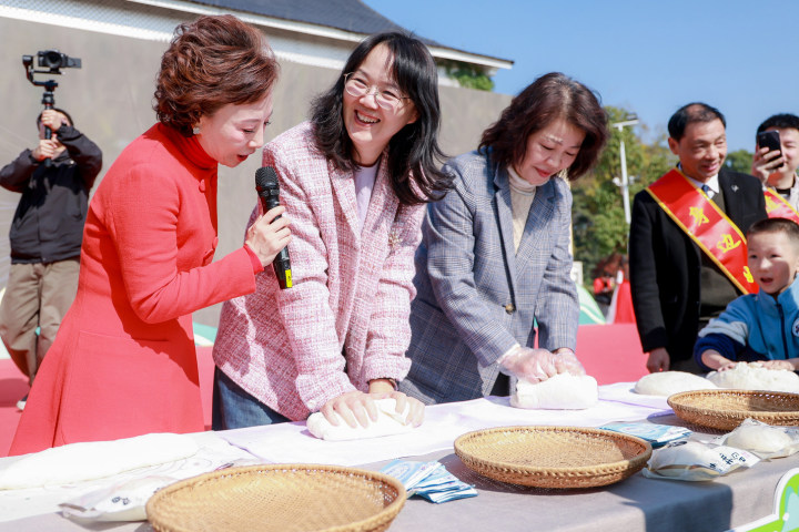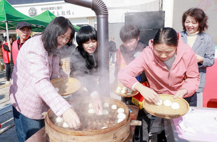 富阳的馒头会“呼吸”,邻里的温情在“发酵”。活动现场,嘉宾们和当地居民一起和面制作富阳特色酒酿馒头,酒酿馒头充分发酵后蓬松绵柔的组织,正如一个和谐的社区,因为人与人之间的包容与善意,才显得如此舒展而充满活力。现场大家一起品尝热气腾腾、香甜松软的酒酿馒头,咀嚼的,不仅是富阳地道的风物滋味,更是那份由时光酿就、在邻里间代代相传的人情味儿。