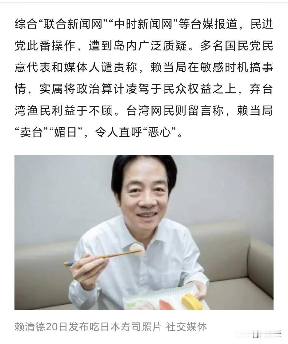 台独分子太坏 21日 台湾卫生福利部门宣布,即日起全面解禁对日本食品的进口限制。同日,台外事部门负责人吴钊燮还特意在X平台发布日本推文,向日本示好。