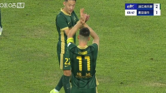 直播吧11月22日讯浙江vs海牛第69分钟,弗兰克被换下场,完成自己代表浙江的最后一场比赛!