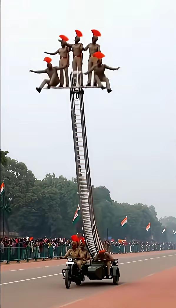 很多网友非常好奇,三哥家的阅兵,怎么会有立这么高的梯子,是搞杂技表演吗?你们这么想,那就大错特错了。三哥搞这么高的梯子,还让几个演员站在上面,是在训练“登天”,今后三哥登月不用飞了,不需要火箭助力了,就靠爬梯子上去。