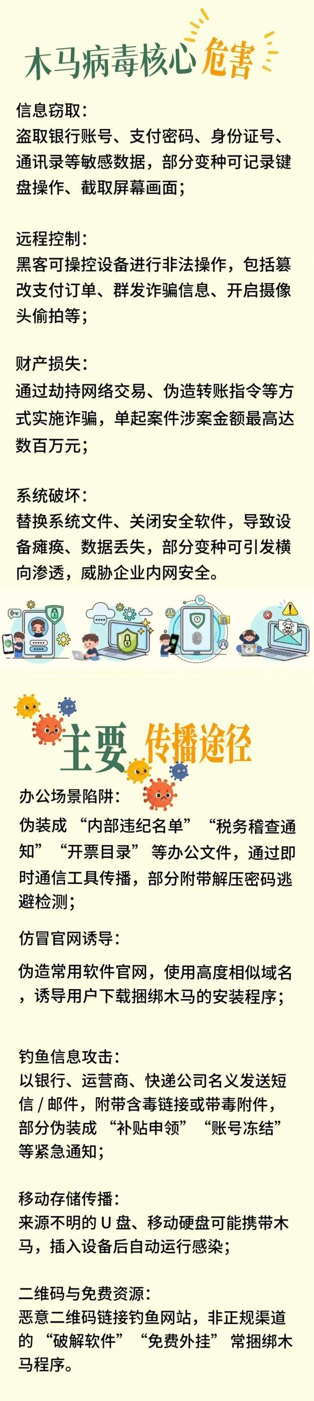 11月22日,网警发出关于防范木马病毒感染的紧急预警。网警提醒,近期,以“银狐”木马为代表的恶意程序变种频发,单日新增变种超10个,针对办公场景、金融交易等领域的攻击事件激增,已造成全国超1000家企业累计损失超20亿元。该类木马具有伪装性强、传播速度快、危害范围广等特点,严重威胁个人信息安全与财产安全。