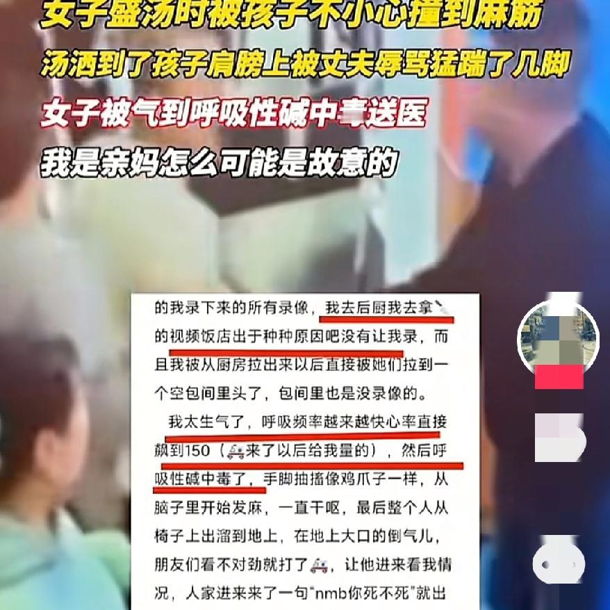 你敢信? 一个妈妈盛汤时 被孩子撞了下,汤洒到娃身上,转头就被老公骂到破防,还被踹了几脚,直接气到呼吸性碱中毒进医院,这哪是老公啊,分明是情绪失控的“炸雷”。 真不是我夸张,这事儿明明是意外,他偏要把火撒在最亲的人身上。最扎心的是,这女的还在喊“我是亲妈怎么会故意”,可在这种人眼里,你的委屈根本不值一提。 我觉得感情里,别信“忍忍就好”那套。一个连意外都容不下、只会拿家人撒气的人,早该跟他划清界限,毕竟你的情绪和健康,重要的多。 你们说,要是遇到这种事儿,第一时间该咋护着自己?夫妻之间如何保持新鲜感 夫妻