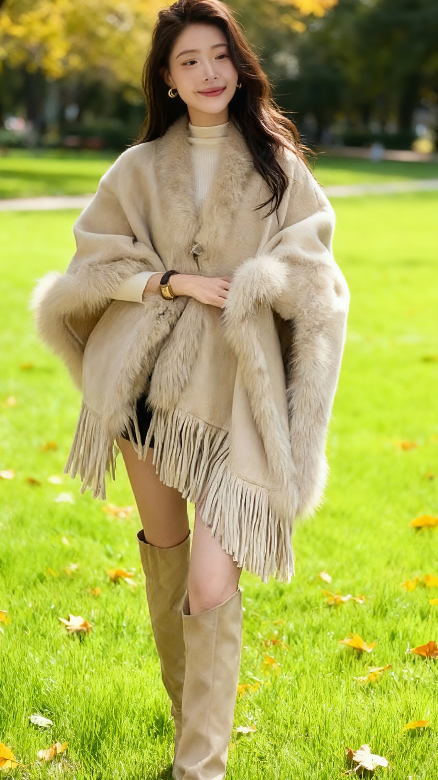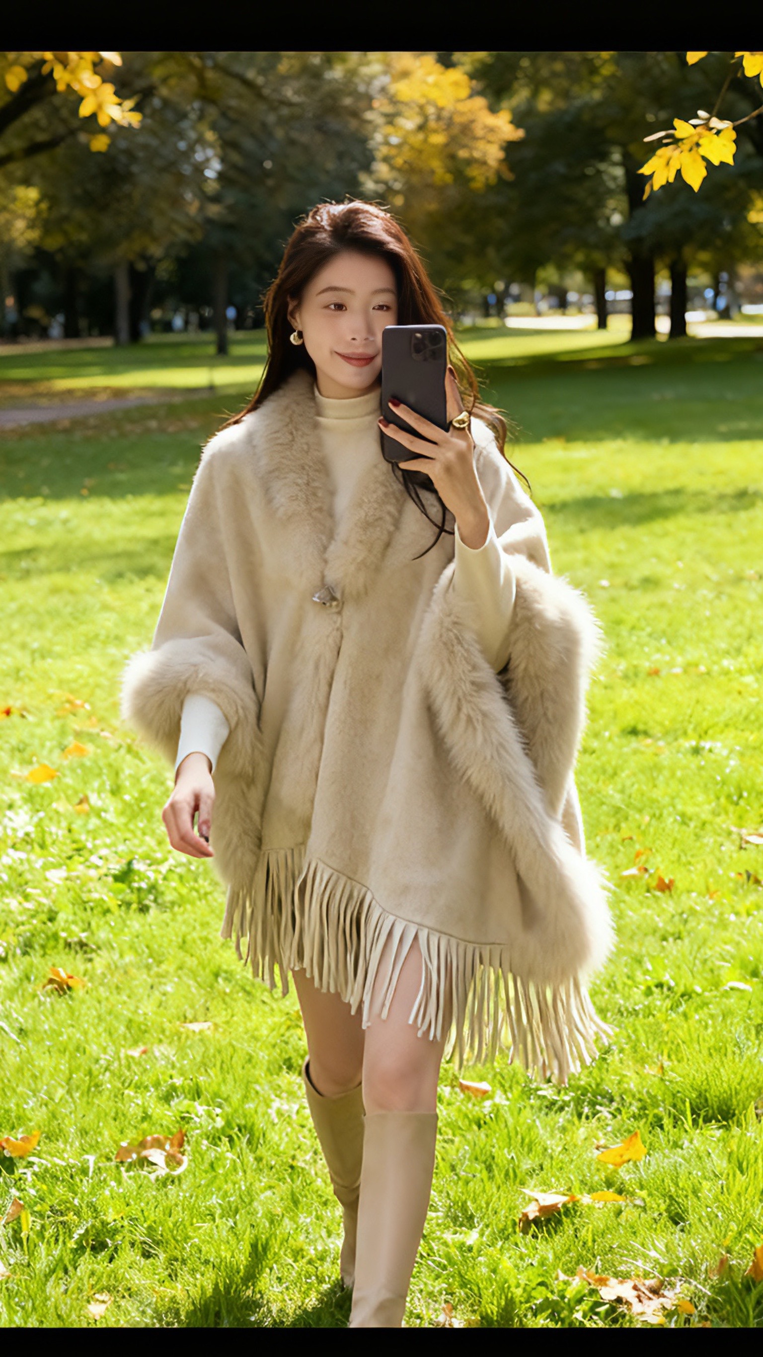 今年流行韩系气质名媛高级感慵懒风氛围感保暖外套 斗篷女流苏下摆时尚搭配服装 穿搭搭配 穿搭时尚 时装穿搭 出街穿搭