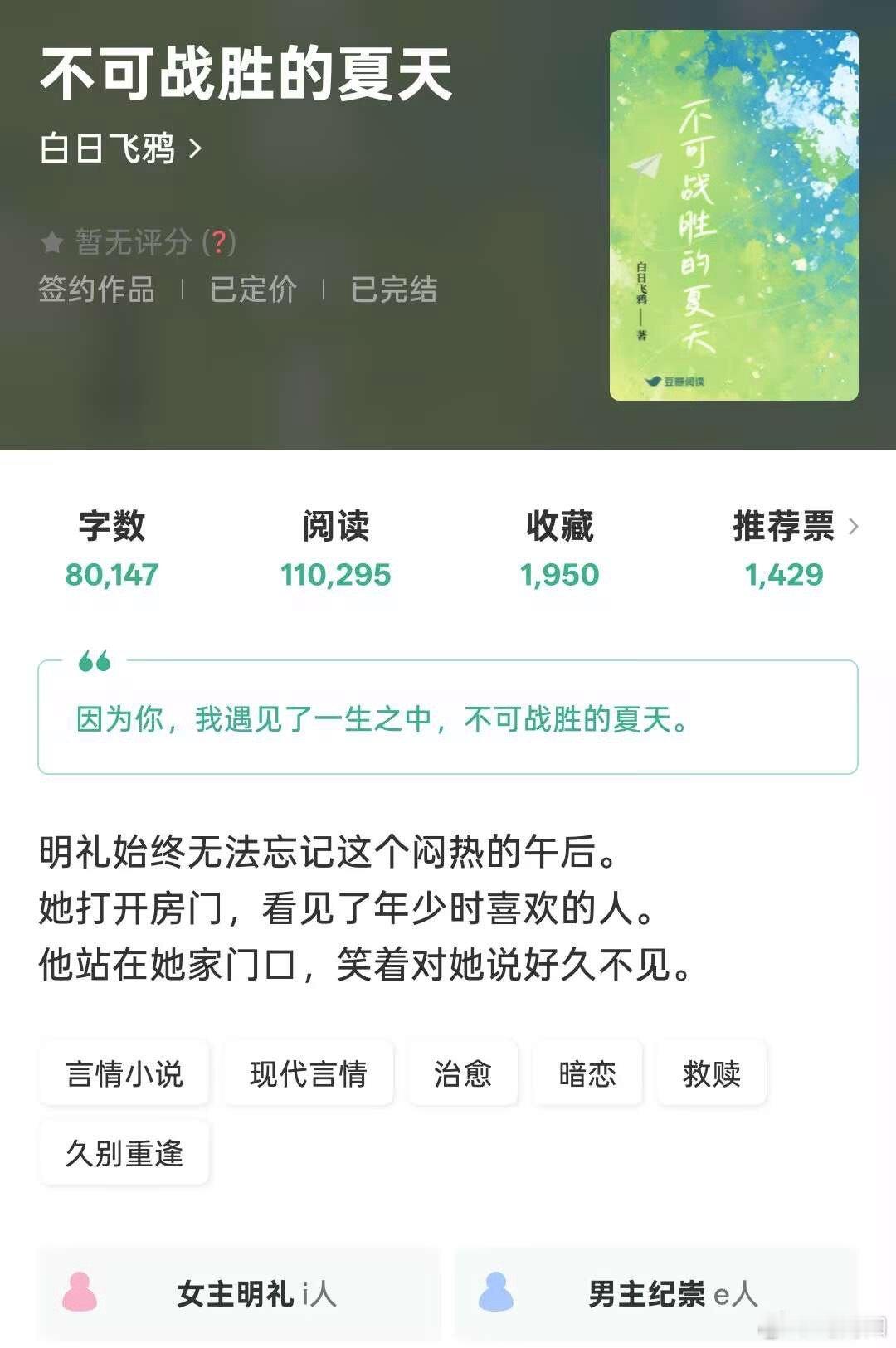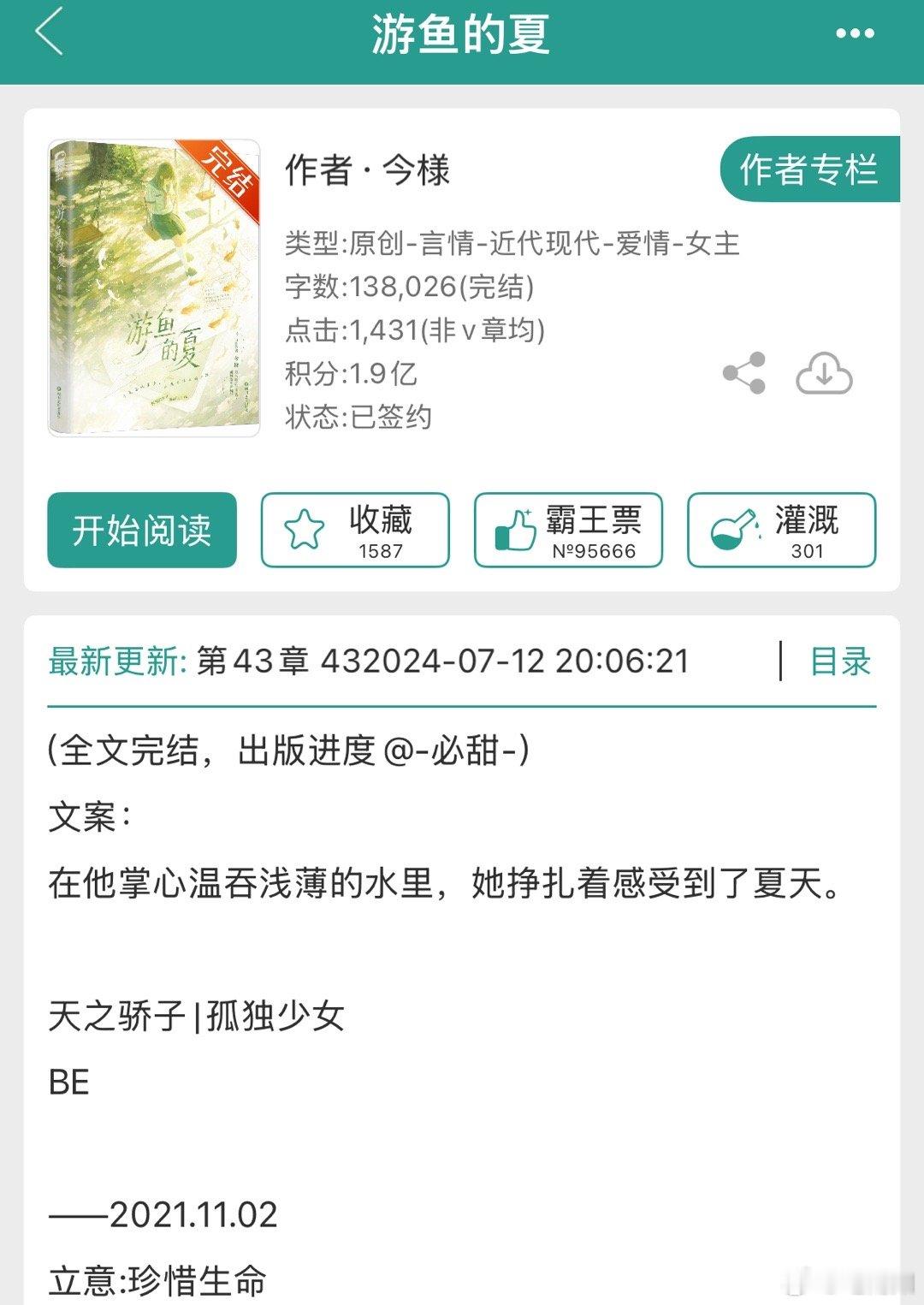 《不可战胜的夏天》 青春暗恋be自卑拧巴少女明礼&阳光开朗纯爱战士纪他们是初恋也是相忘于江湖的陌生人。《在春天》青梅竹马&暗恋成真&久别重逢“你不是说,希望我们重逢的时候,我会跑过来抱住你吗?”《扬汤止沸》 校园暗恋野蛮生长 周琎vs 天之骄子 陆靖文她用讨厌作幌子,压抑自己的心动,她妄图不再喜欢陆靖文,但她承认,自己没有毅力割舍这个人。《游鱼的夏》校园暗恋be孤独的少女于夏x耀眼万人迷陈西昀于夏喜欢夏天,从遇见陈西昀开始