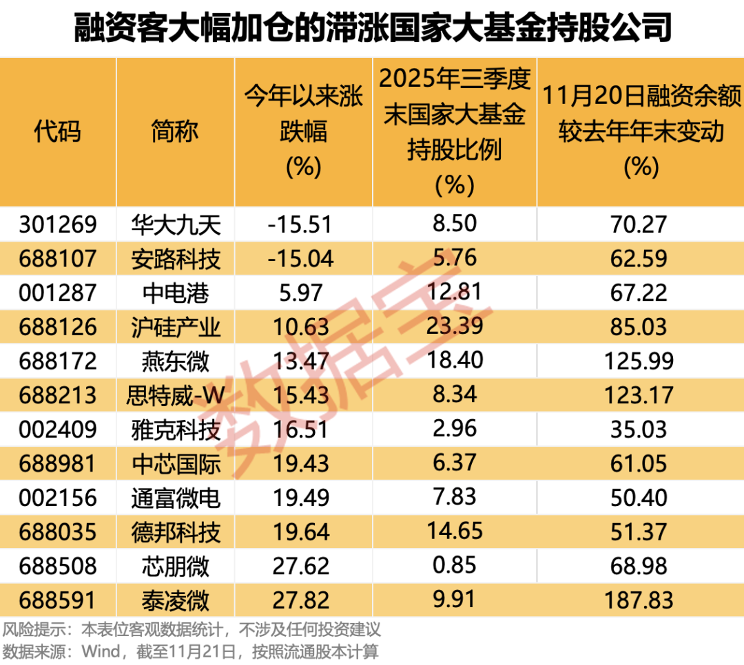 盛科通信-U融资余额增幅超过400%,公司是国内领先的以太网交换芯片设计企业,面向大规模数据中心和云服务的高端芯片产品系列,是公司的产品战略的重要核心之一。截至2025年三季度末,国家大基金持股占总股本比例15%;国家大基金减持后,截至2025年11月17日,国家大基金持股比例为14.6%。
