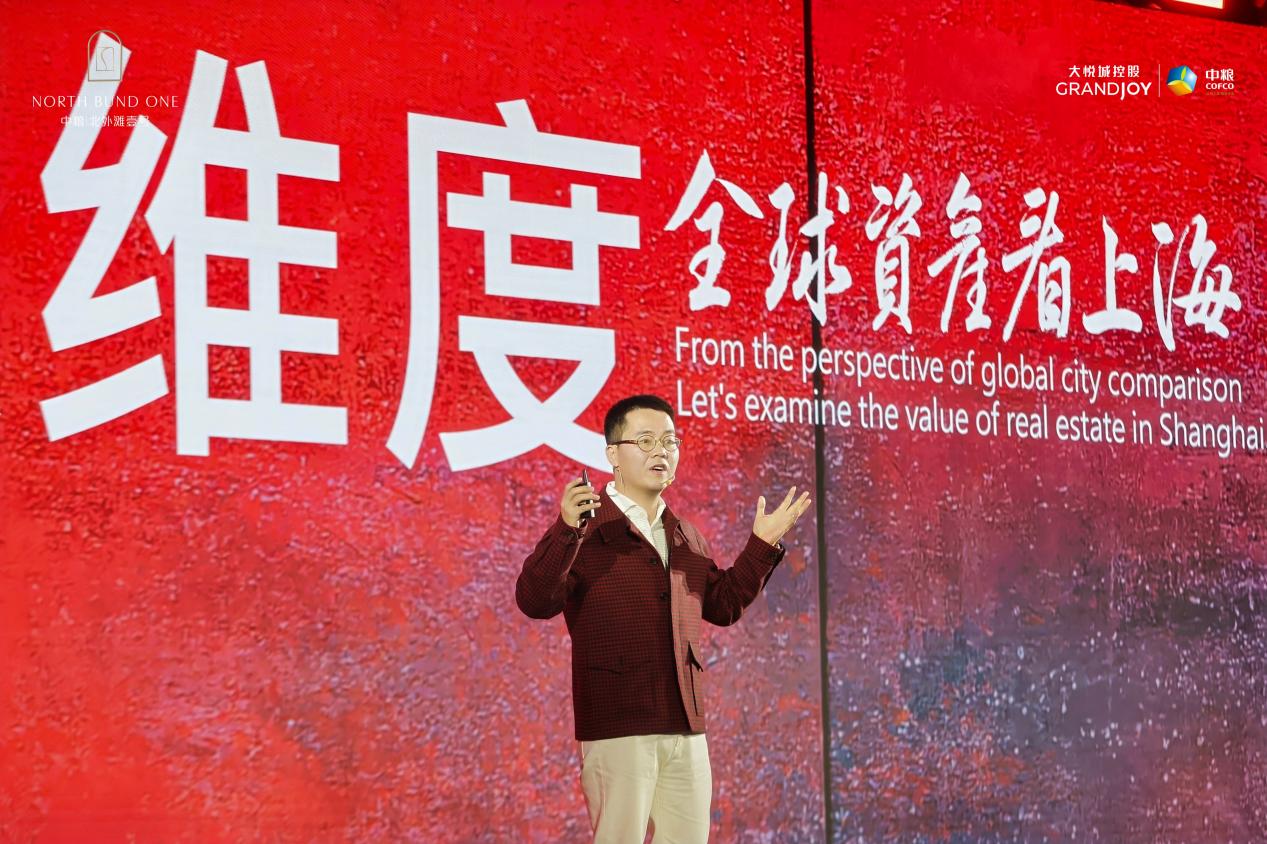 著名城市评论家刘德科在主题演讲中,围绕“全球资产看上海”展开价值解析。他指出,房价在微观层面由供需关系决定,宏观层面则是经济发展、城市建设与货币放量的三重沉淀。基于这一逻辑,他从上海世界级滨水区价值、风貌资产的稀缺性、中粮“壹号系”的战略布局,以及与高端客户需求的深度契合等层面,论证了中粮·北外滩壹号作为“世界S湾”上的稀缺作品,是为全球塔尖人物定制的时代藏品。