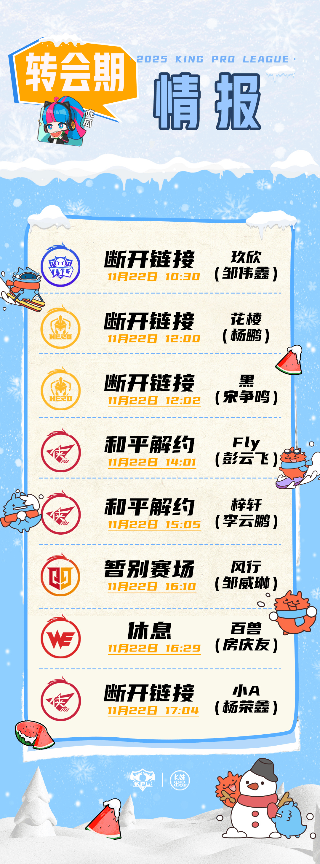虎扑11月22日讯KPL发布今日转会情报汇总:哪位选手最令你感到意外呢?