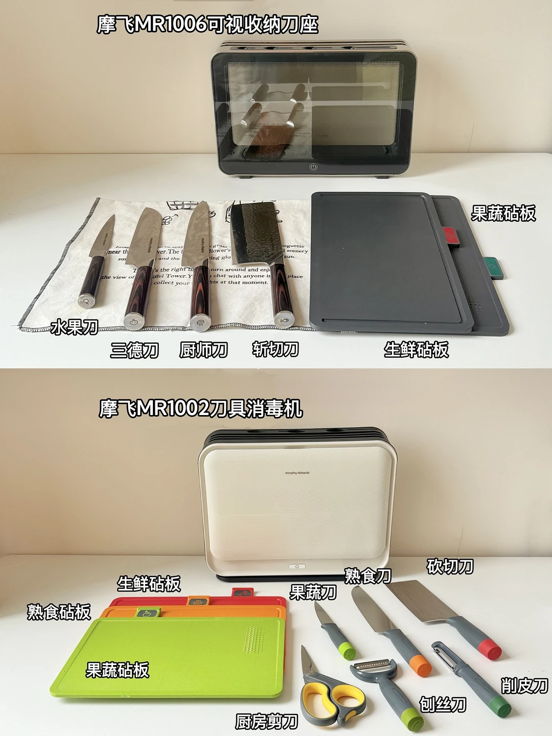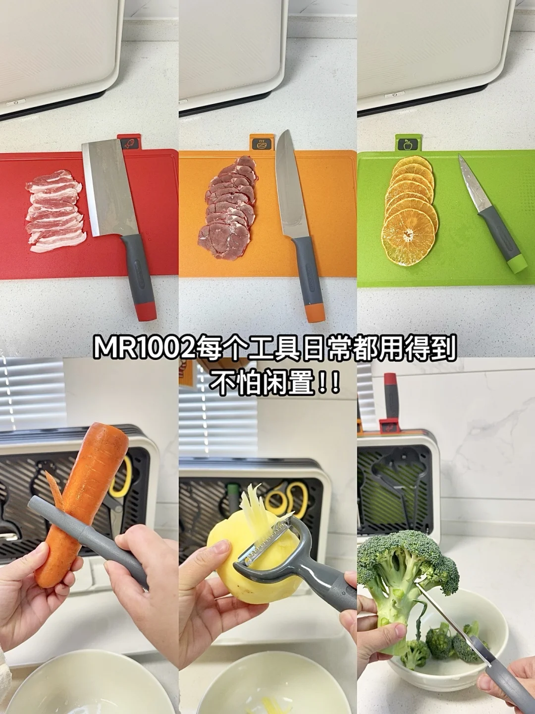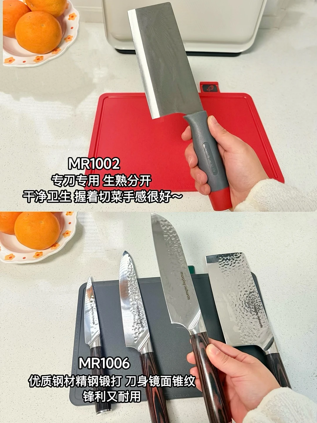 对生熟分类要求高些的宝子像孕期、有小宝宝做辅食、减脂期的宝子们就可以选这款,因为MR1002砧板分类更全面,而且配套多了很多小工具~