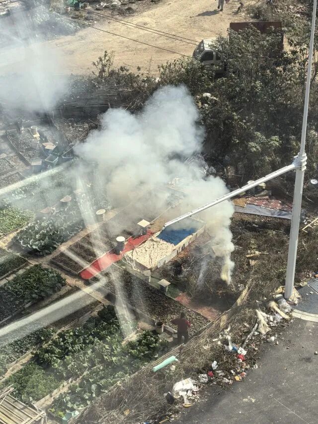 南昌青山湖区电建产控洺悦府小区门口的兴悦路,一直是条断头路,也没有路灯的,路上垃圾越堆越多,还有人圈地种菜,时不时还焚烧秸秆浇大粪,小区周围环境差,居民深受困扰。