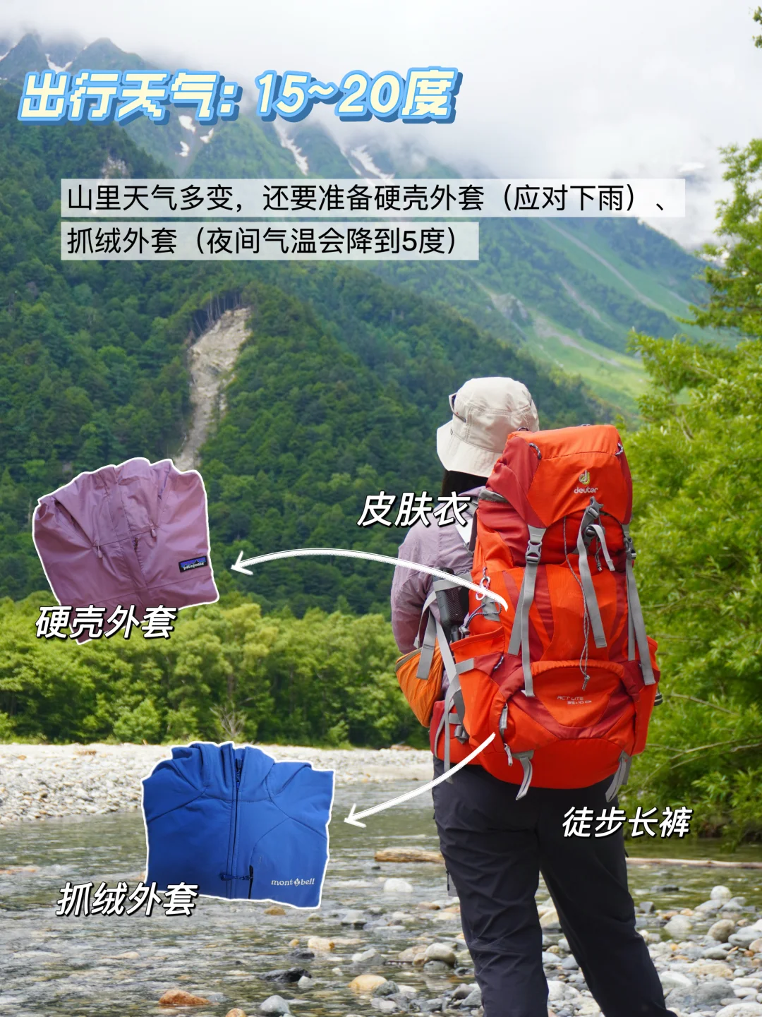 整体的清单思路就是穿着匹配出行地天气的衣物,再额外准备一些过夜需要的装备。