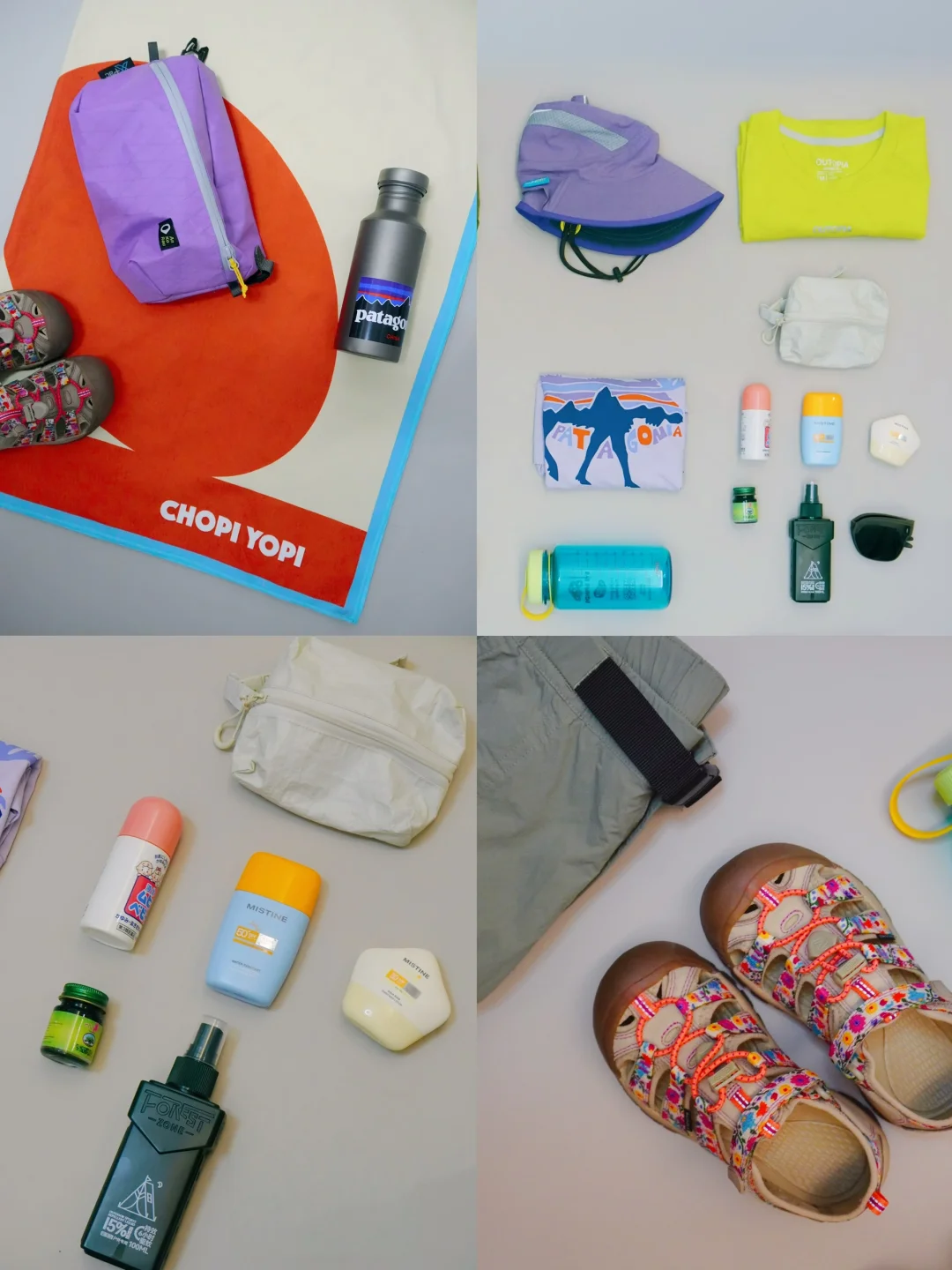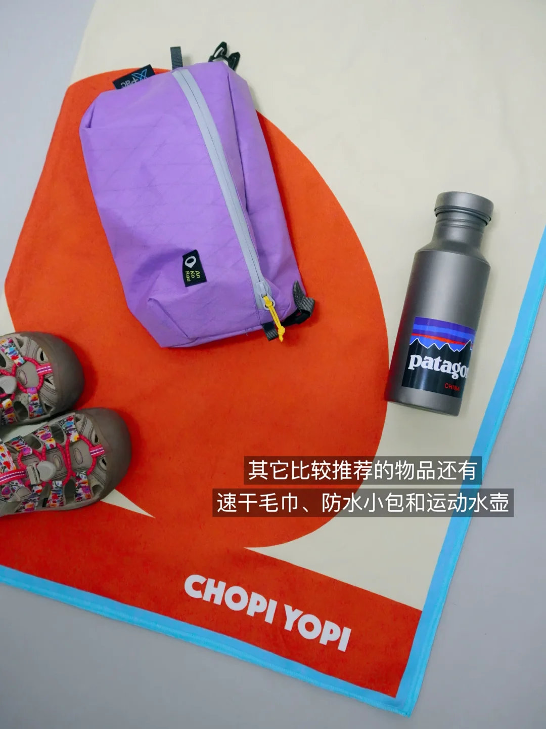 ✔️防水小包:我们的习惯一直是背挎包放随身物件,干湿纸巾、防晒霜、手机等。
