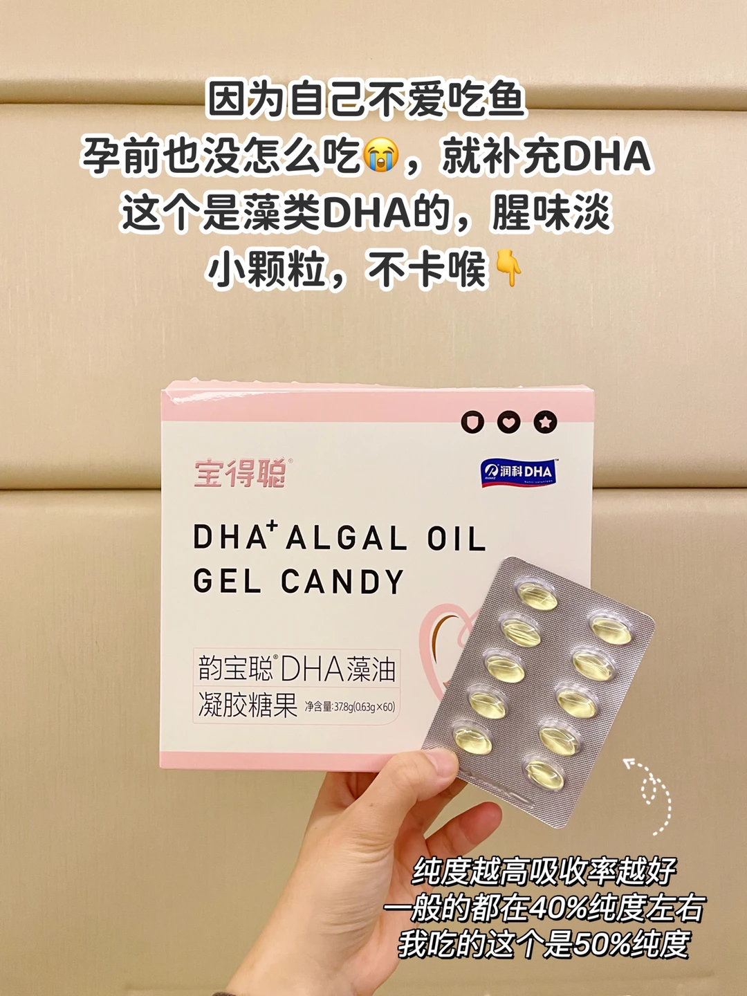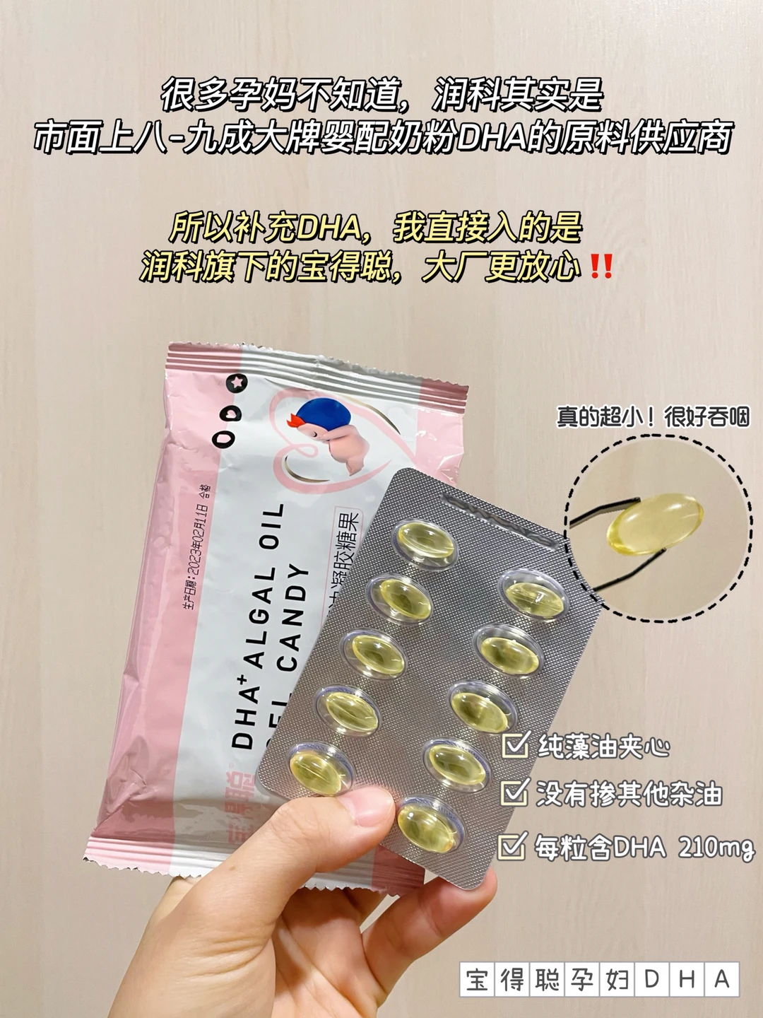 而且我对比过一些其他牌子的孕妇DHA,它真的非常非常小一颗!不卡喉咙👍🏻