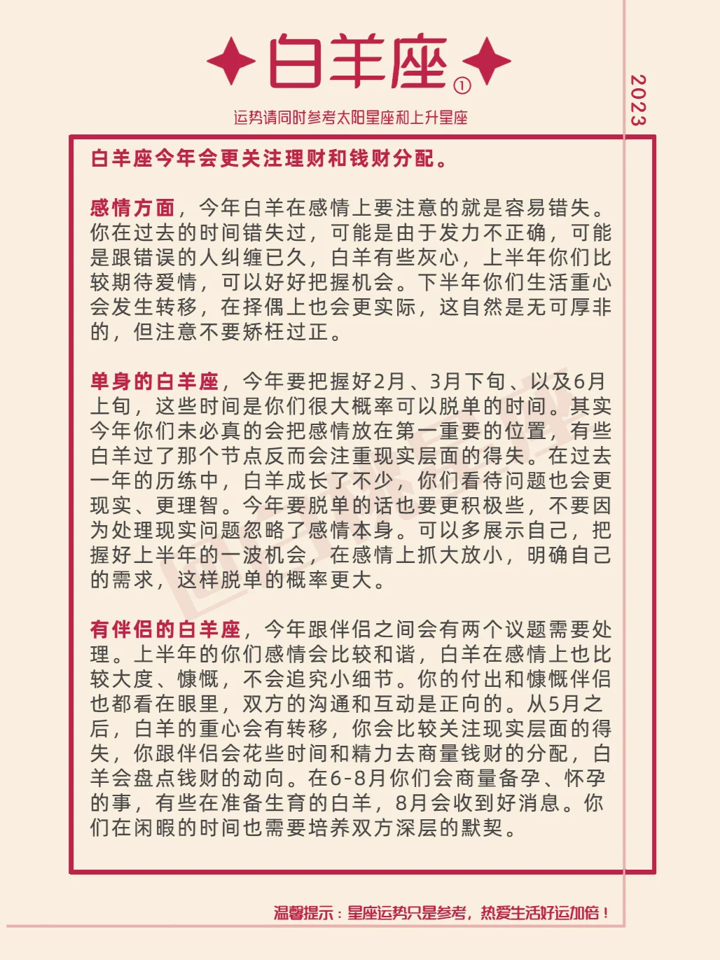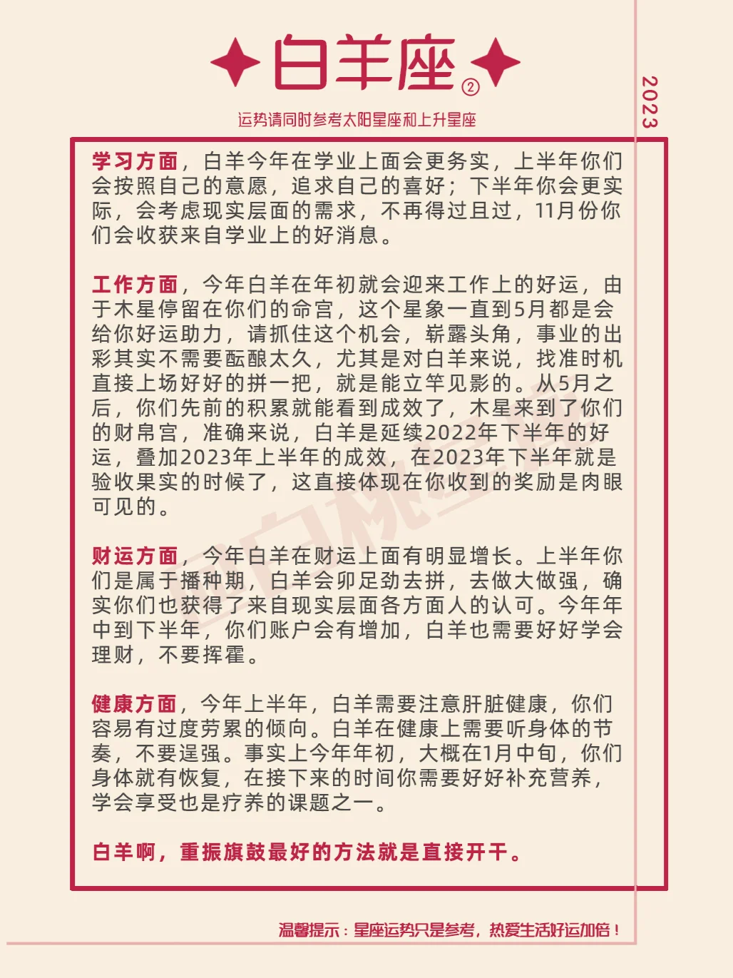 『白桃星座』白羊座2023年运