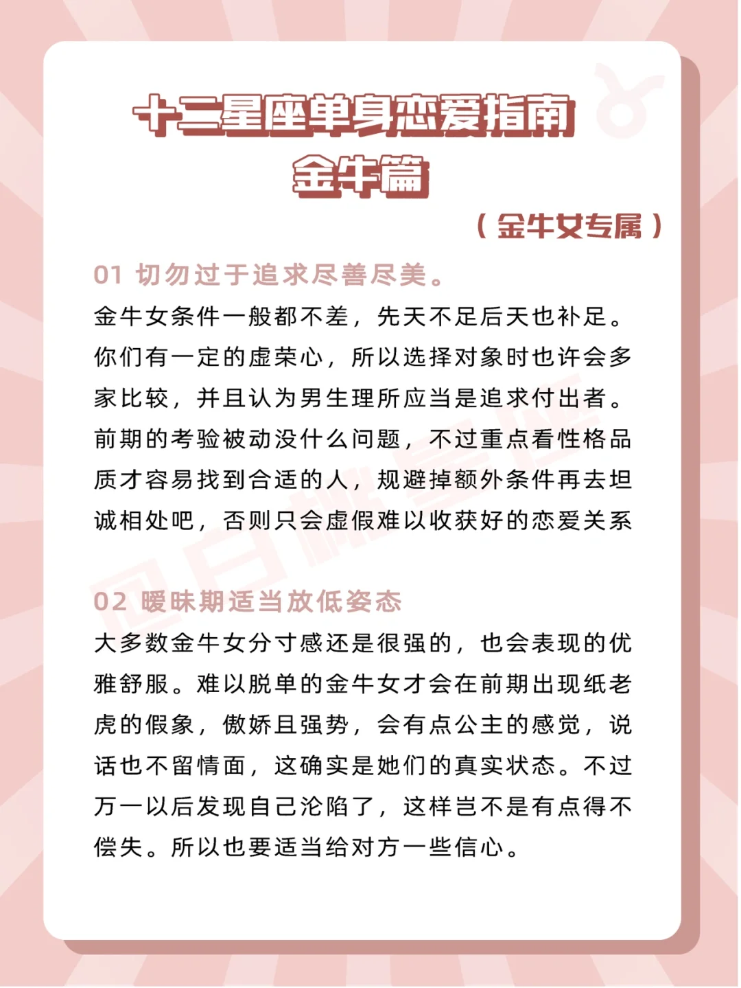各位金牛座宝宝们快来领取属于你的脱单攻略吧💑