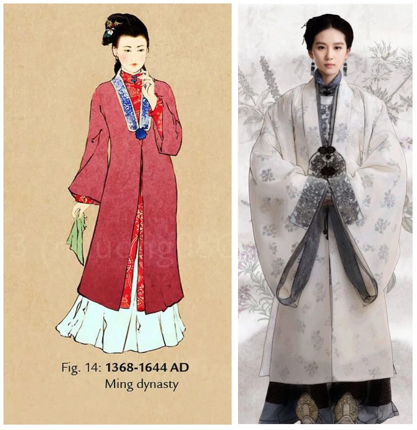 明代女孩主要穿[飞吻R]长袄裙,袄衣是琵琶袖,领口有白色的边。
