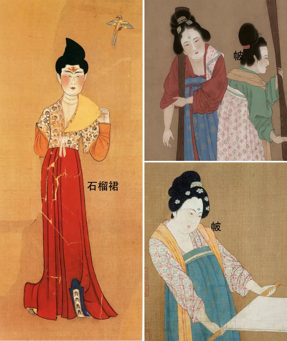 唐朝时“连衣裙”不再流行,短上衣、裹胸裙和长披肩三件套成为最时兴的打扮。