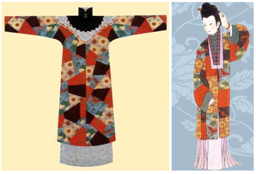 明代还流行各色碎布拼接的[飞吻R]水田衣。