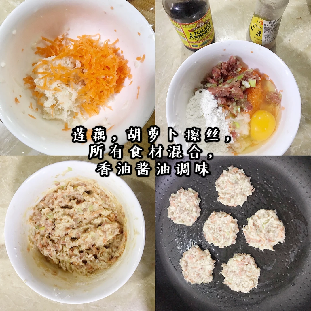煎藕饼:做法在最后三图。这个做法还挺好吃的,还可以团成丸子油炸一下大人吃也不错。