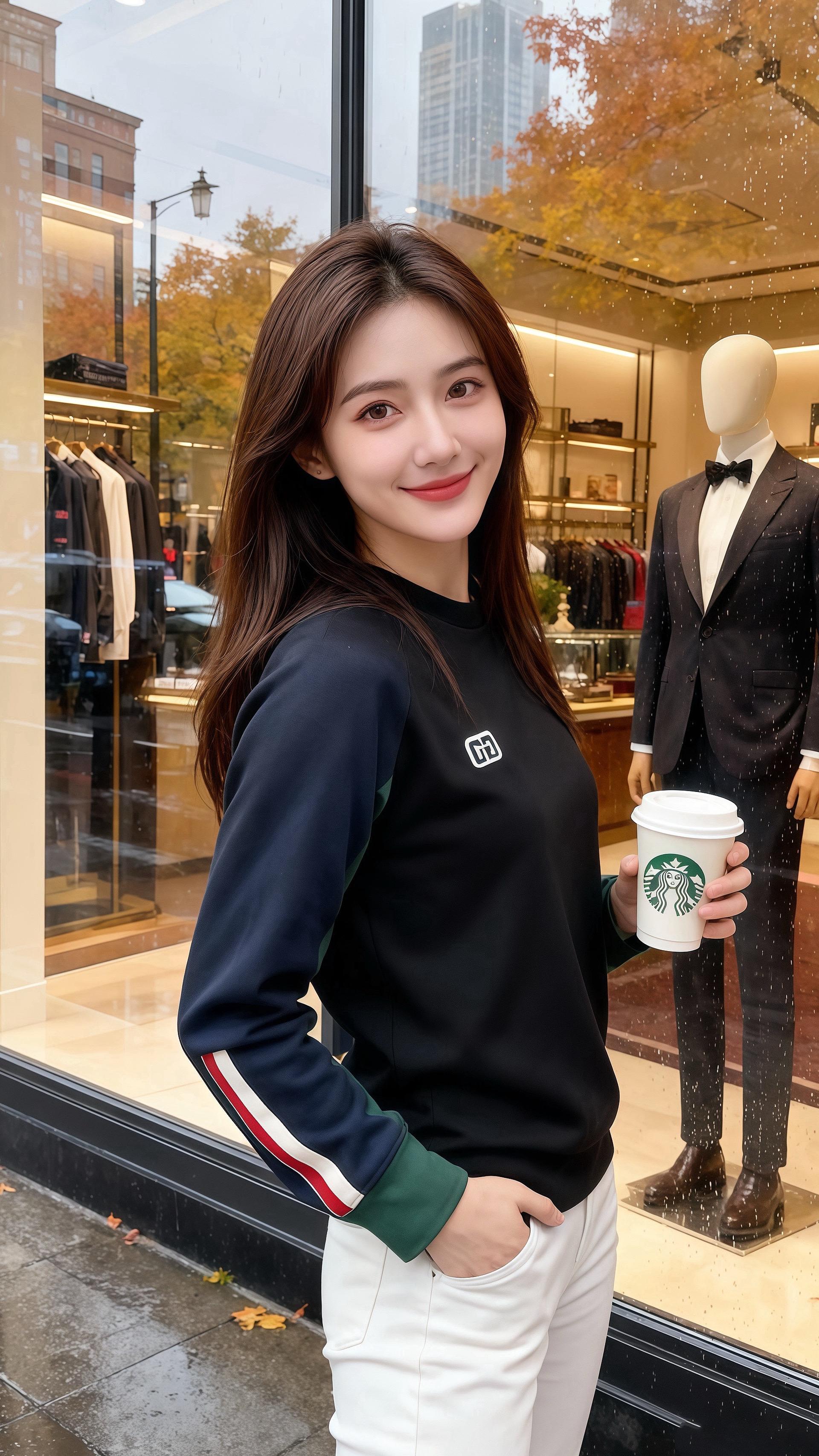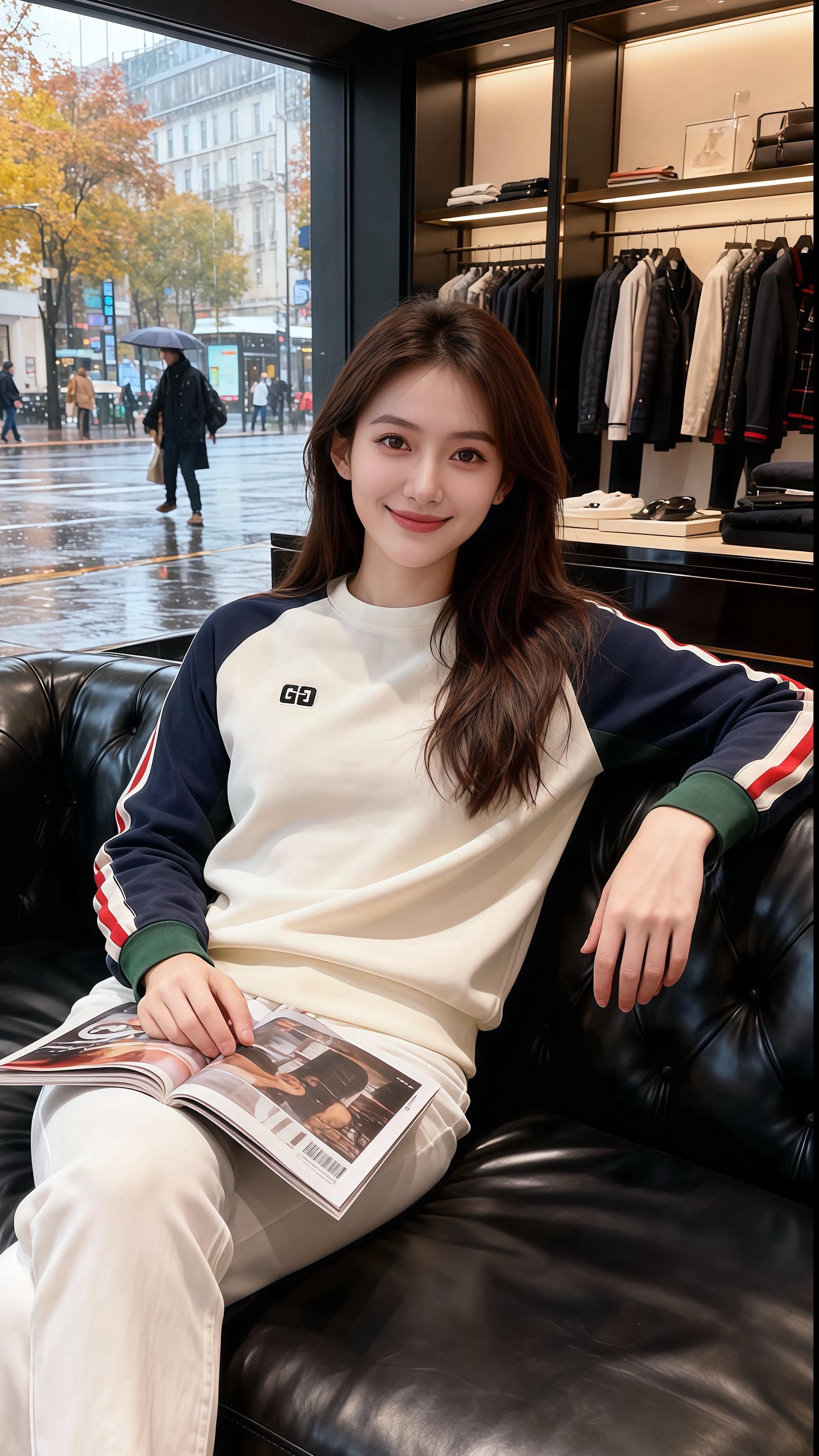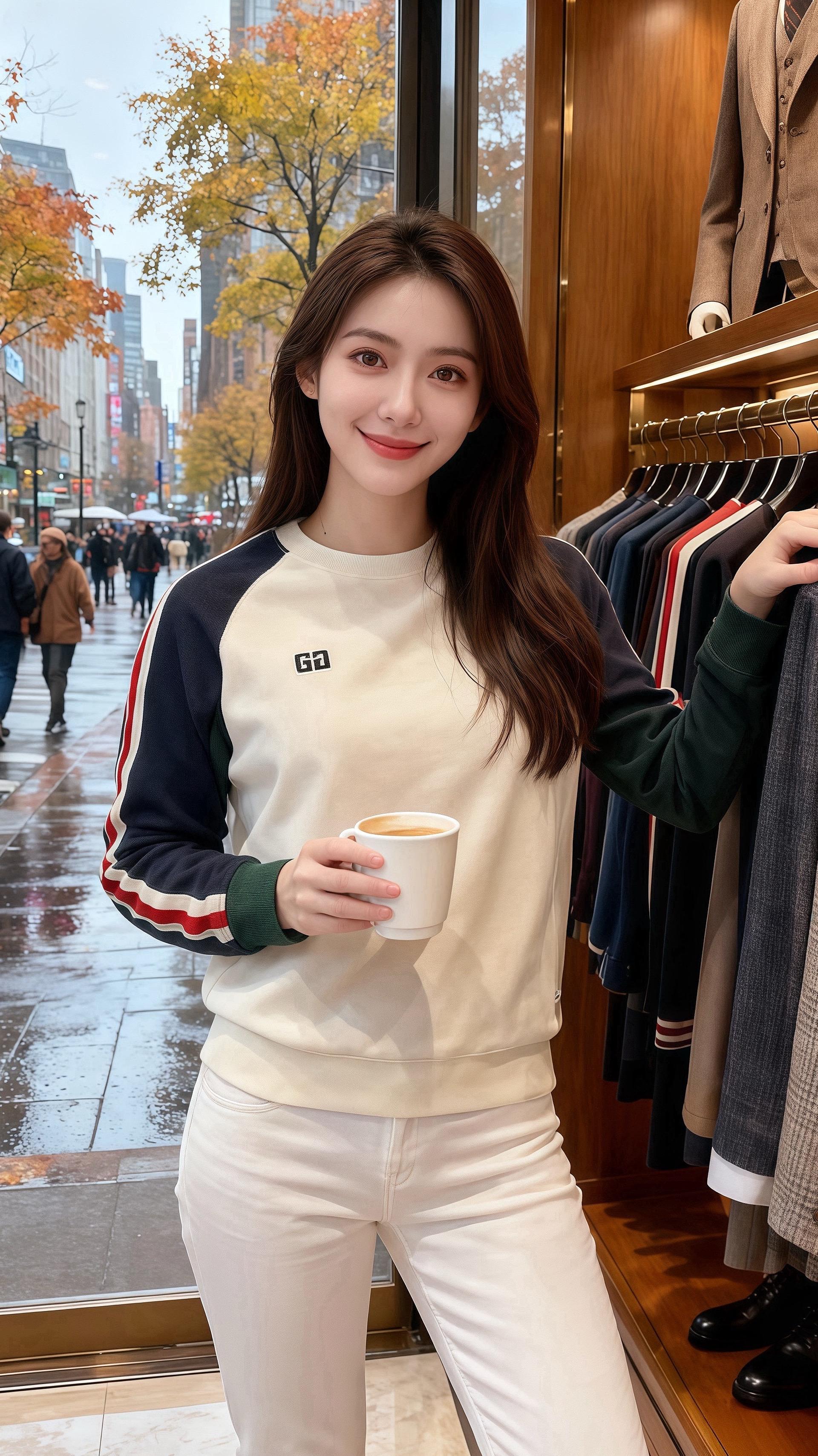 秋雨裹着梧桐叶粘在橱窗上时,许妍正捏着热拿铁站在成衣区。皓明推门进来的瞬间,她指尖的奶泡晃了晃——他穿的藏青拼色卫衣,袖边那道红白条像揉碎的枫色,刚好落在她心跳漏拍的节奏里。