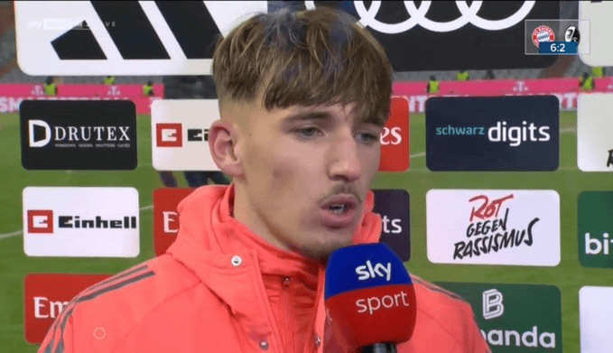 虎扑11月23日讯德甲联赛,拜仁6-2弗赖堡。赛后,拜仁球员伦纳德-卡尔接受天空体育采访。