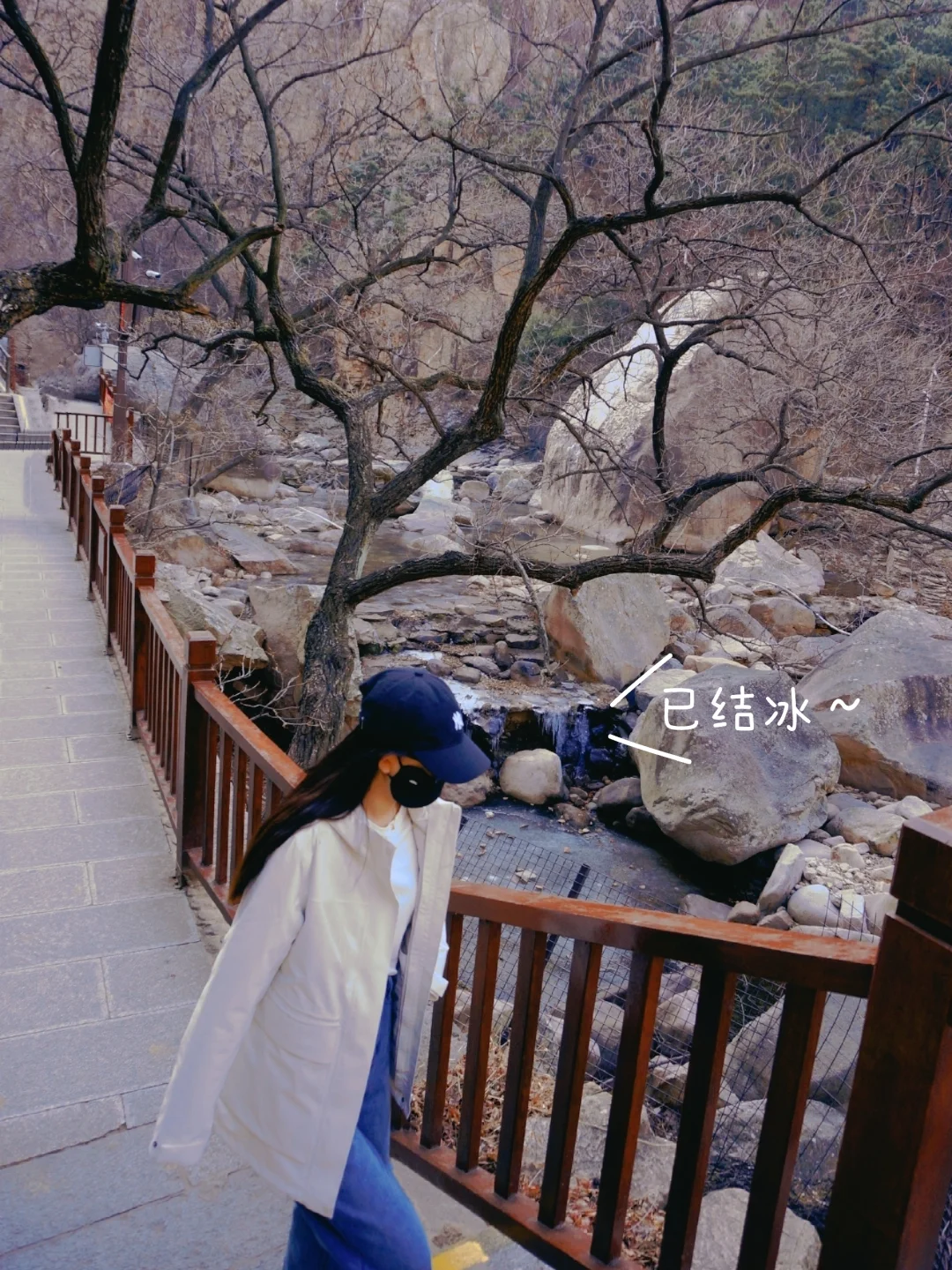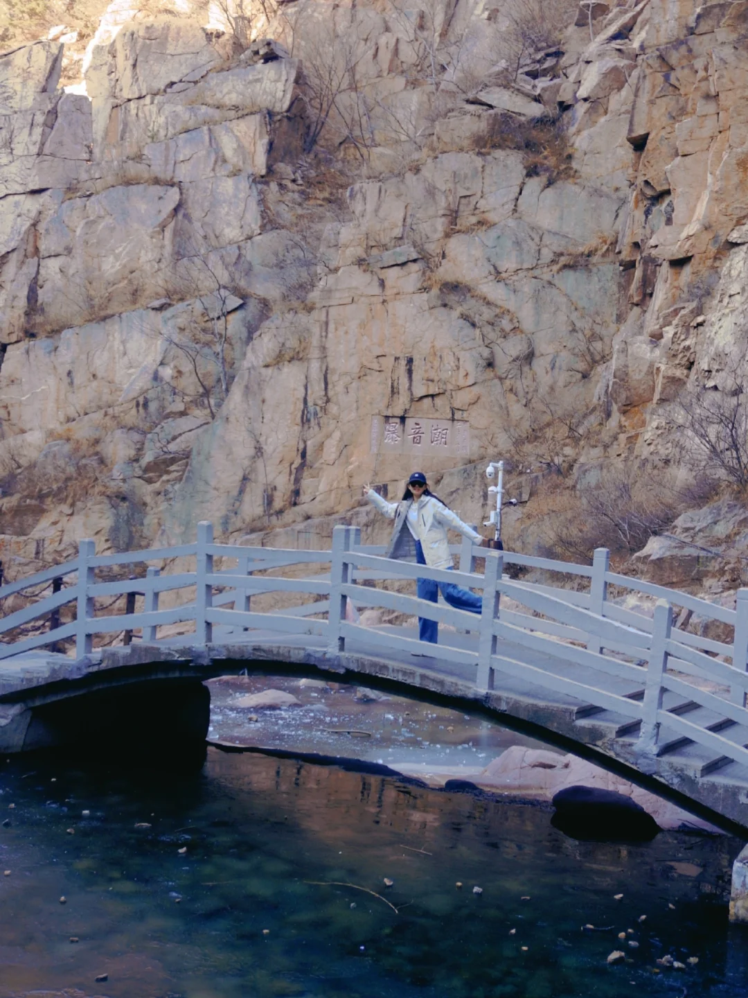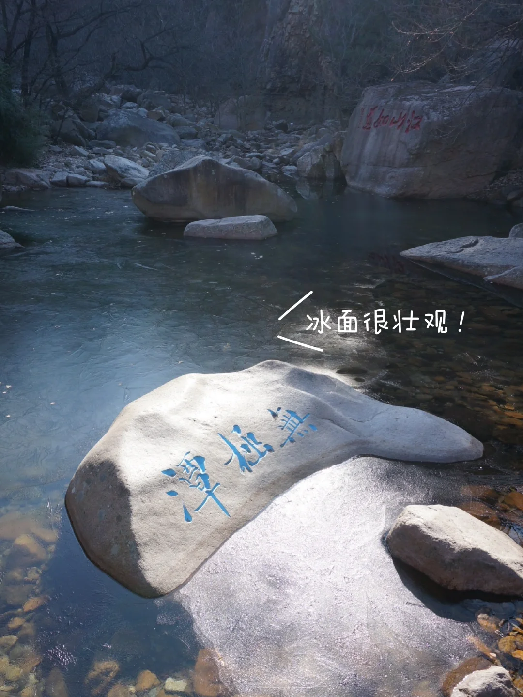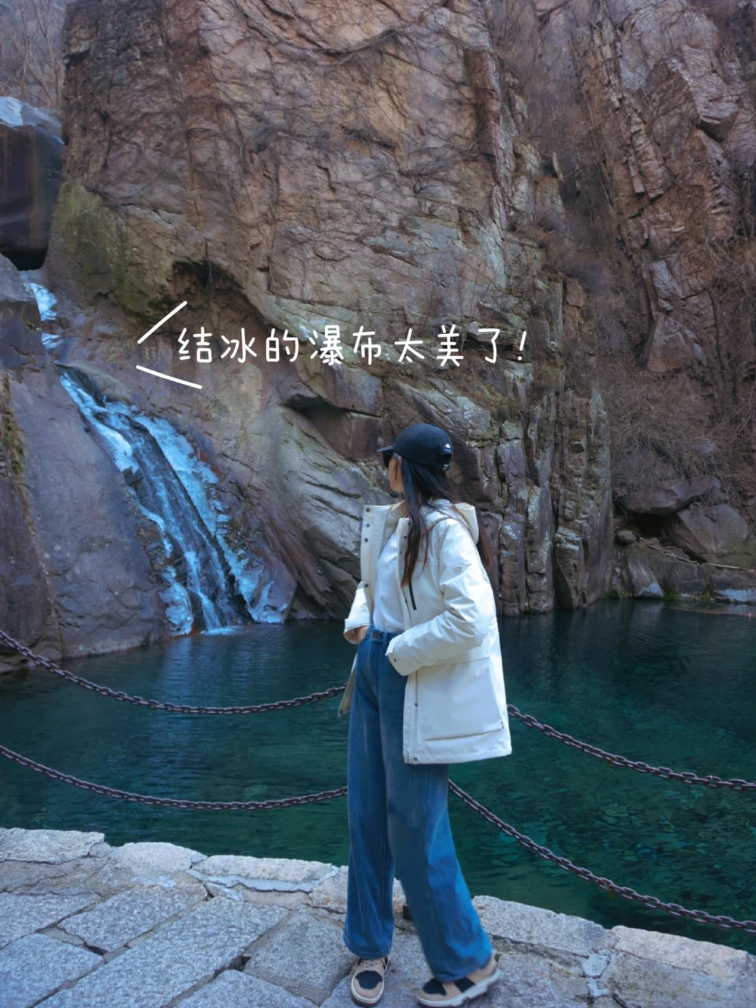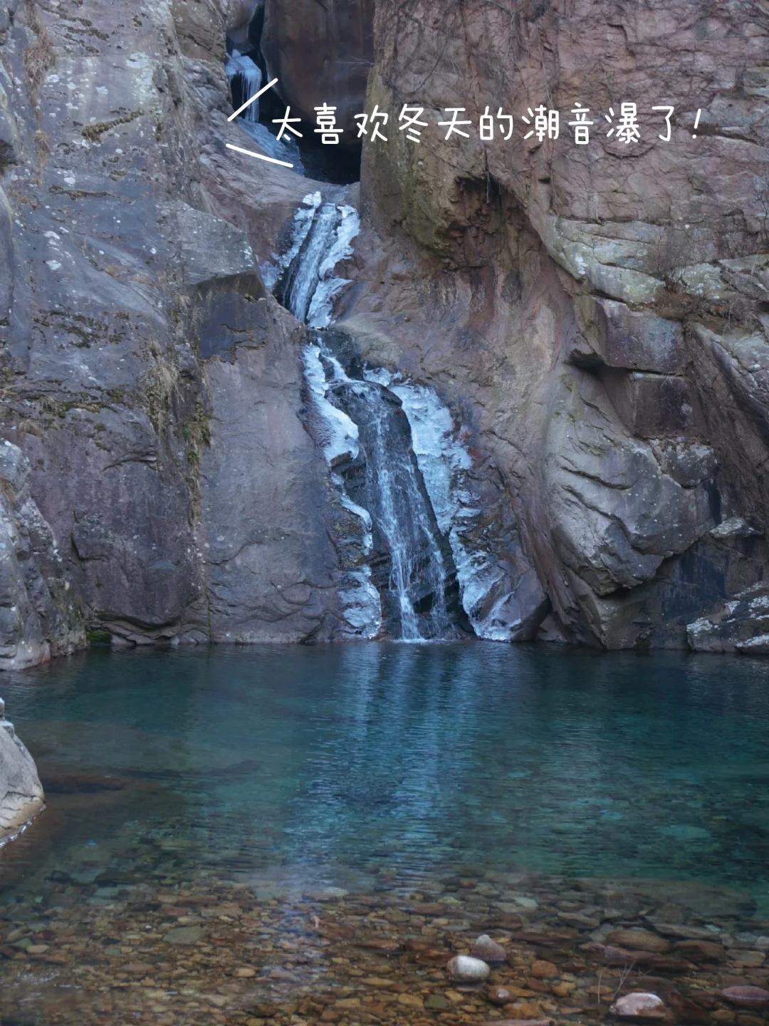 ②潮音瀑方向:适合时间短、休闲游的朋友!30分钟左右抵达,天冷瀑布两侧已结冰,形成了冰川瀑布,潭水清澈见底,超美!原路返回~
