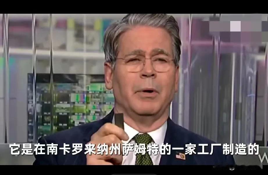 贝森特举着一个金属块宣称这是美国25年来制造的第一块稀土磁铁,这是一家位于美国南