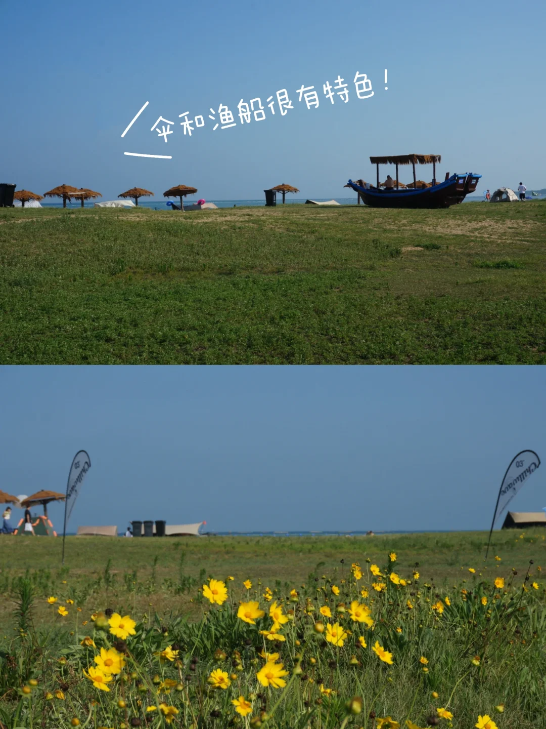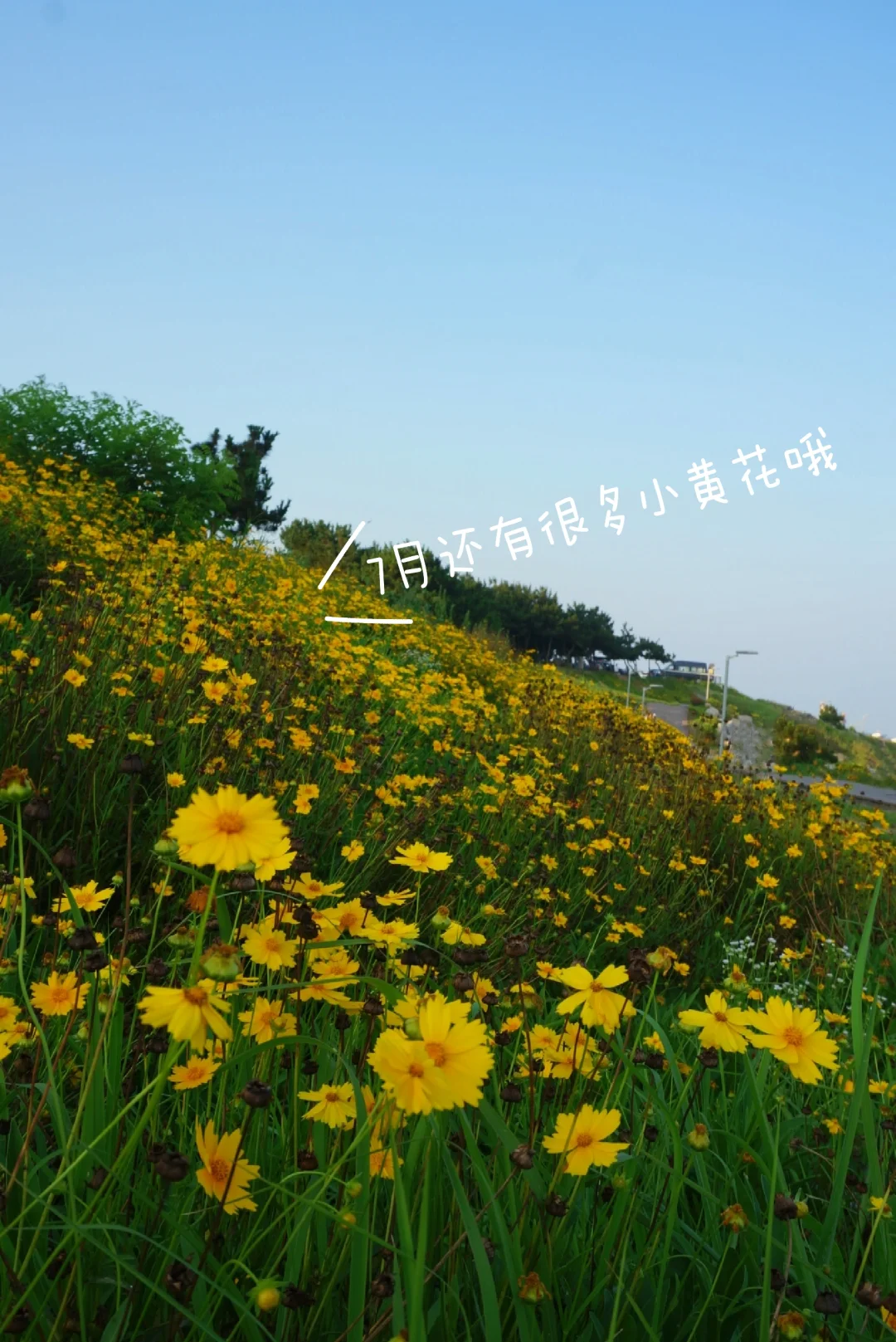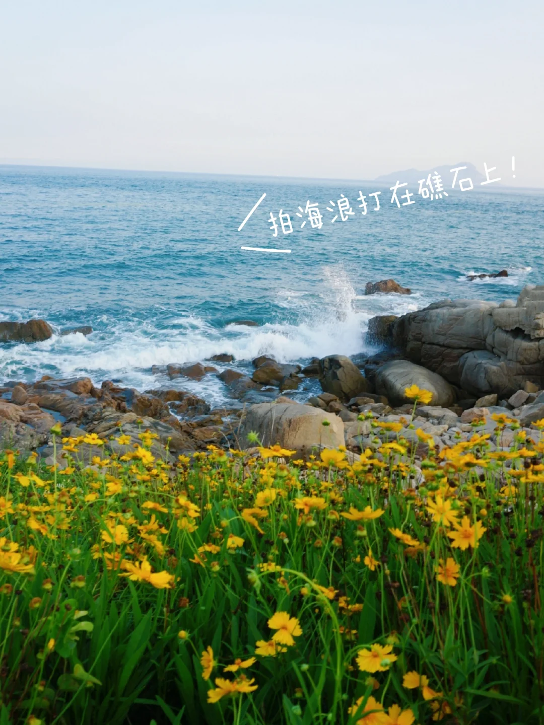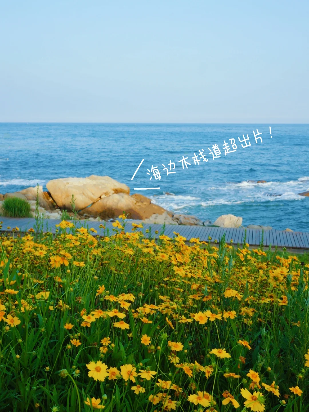📍连三岛:玩完银沙滩直接打滴定位西环岛路7号停车场,这里是最精华的地方!看海浪打在礁石上,在木栈道上悠闲拍照📷,没想到7月份了还有大面积的小黄花,一些谢了一些又盛开,等着远道而来的朋友欣赏~累了去大房子咖啡坐一坐,看着大海喝着咖啡很惬意~图7-12