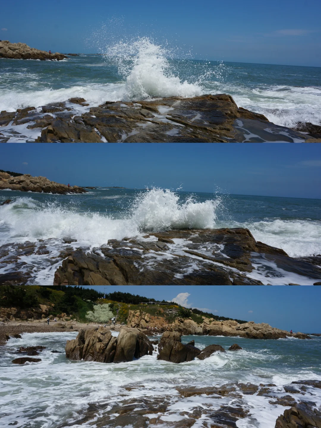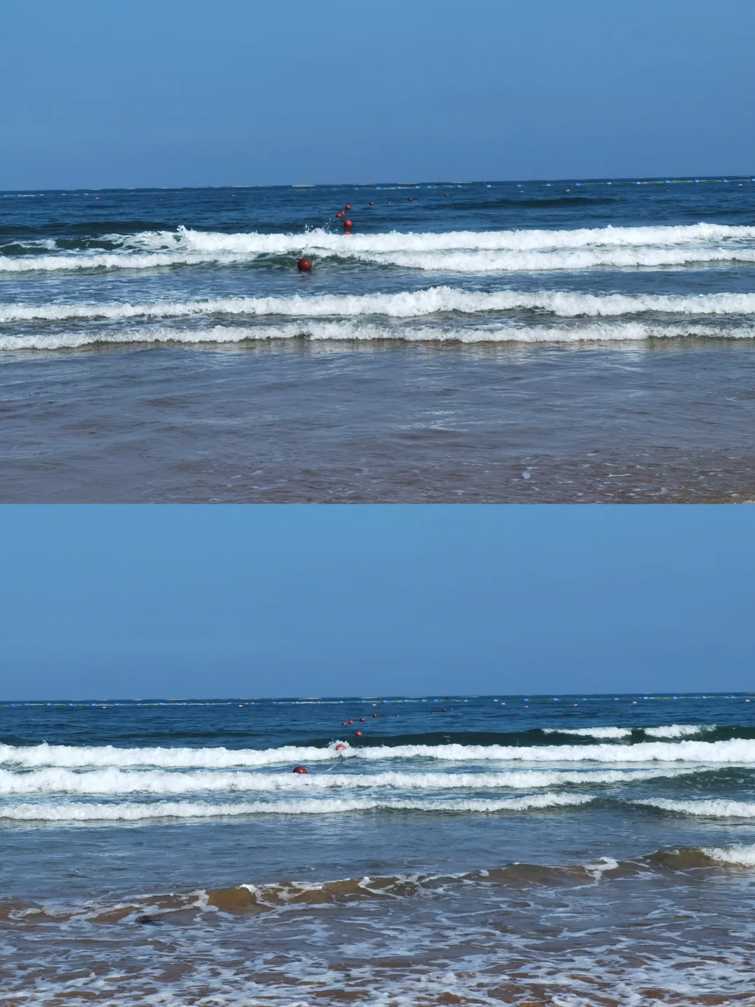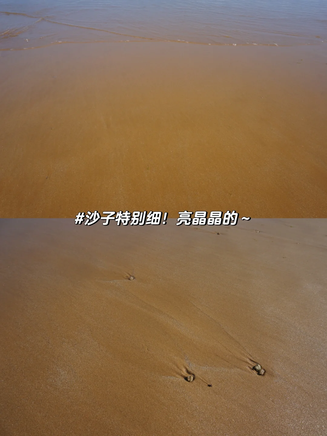 📍银沙滩🌊:水很干净沙子也特别细,上边确实有银色的感觉,亮晶晶的很好看!有浒苔但是不影响玩耍,不要太介意哈~越往西边人越少,有免费冲脚的地方,淋浴收费~这个季节是下海游泳玩耍最好的季节,银沙滩不用犹豫闭眼冲❗️图1-6