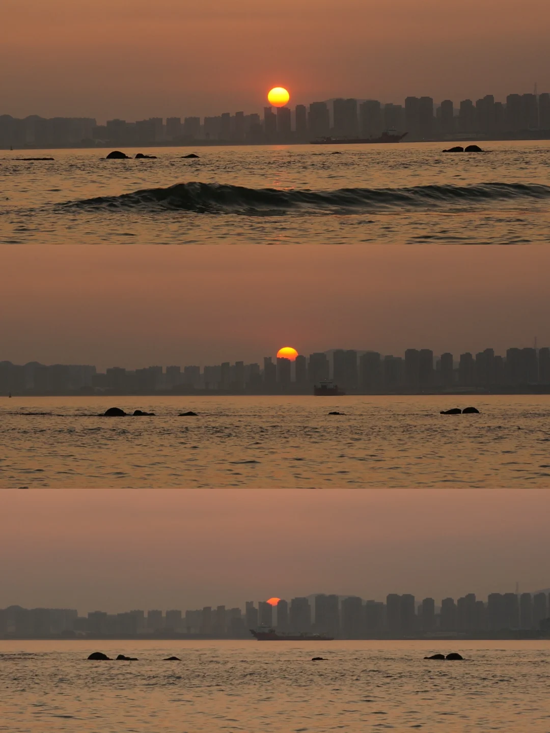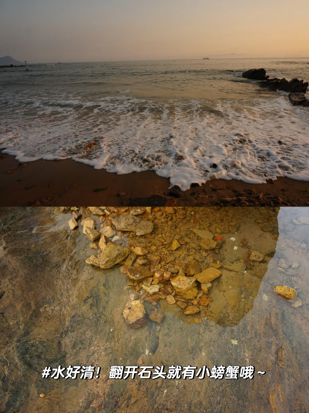 📍鱼鸣嘴:这里是赶海看日落最佳位置!一定看好潮汐表,最低点退潮的时候礁石都露出来才能赶海,抓小螃蟹小生蚝~👍如果早上起不来看不了日出,那就去鱼鸣嘴看一场海上日落吧,从连三岛一直往鱼鸣嘴村方向走,看到渔船上木栈道,绕过山头去后边,就可以看到绝美日落啦🌅晚上6点30从西环岛路7号停车场往鱼鸣嘴村方向赶,6点45抵达开始,7点10分落日结束,整个过程很快,想好拍照姿势!图13-18