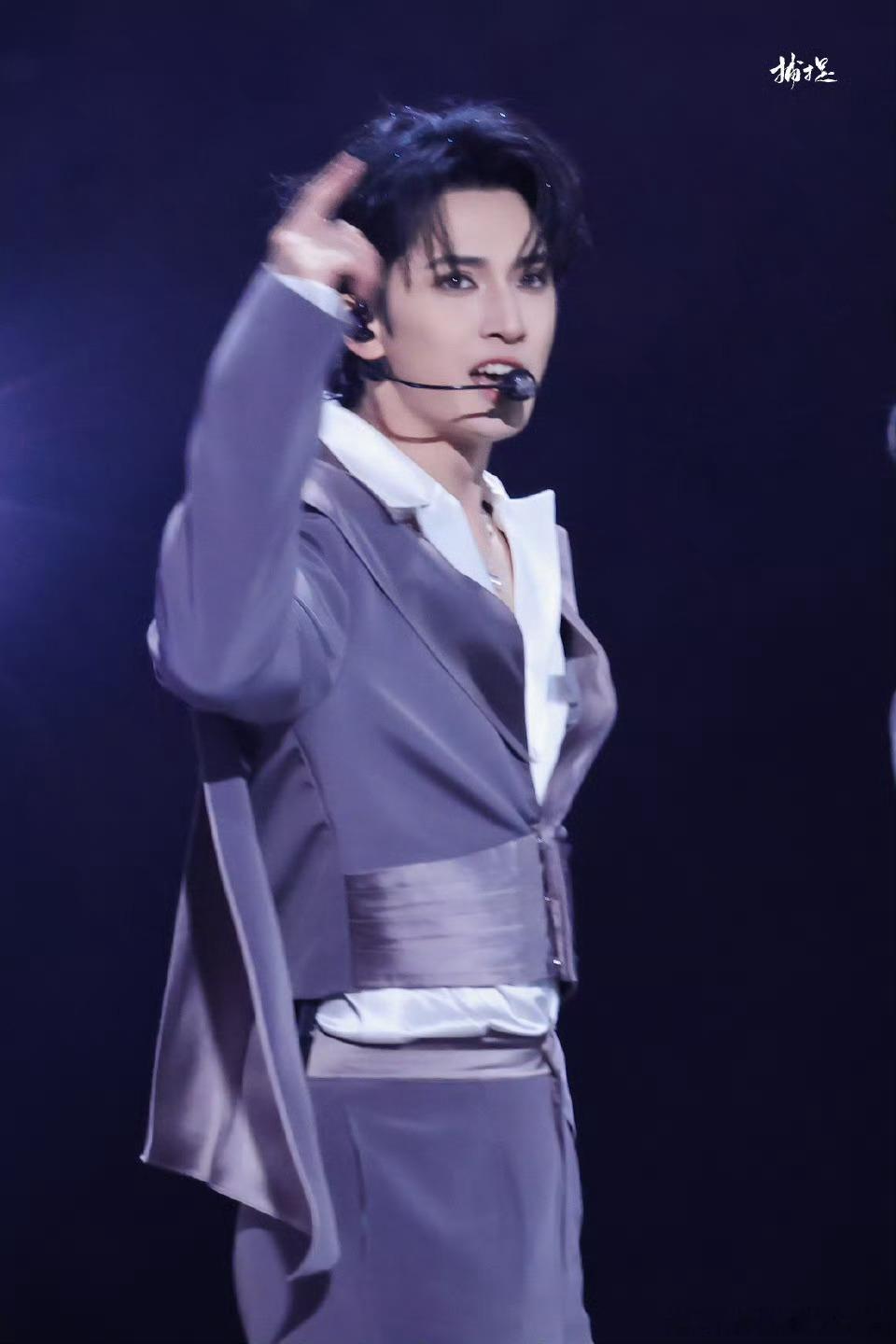 严浩翔清瘦感,谁懂这个浩翔西装+中分卷发,腰封西装going味,帅气又优雅,一整个爱住舞台上发光的浩翔啦!