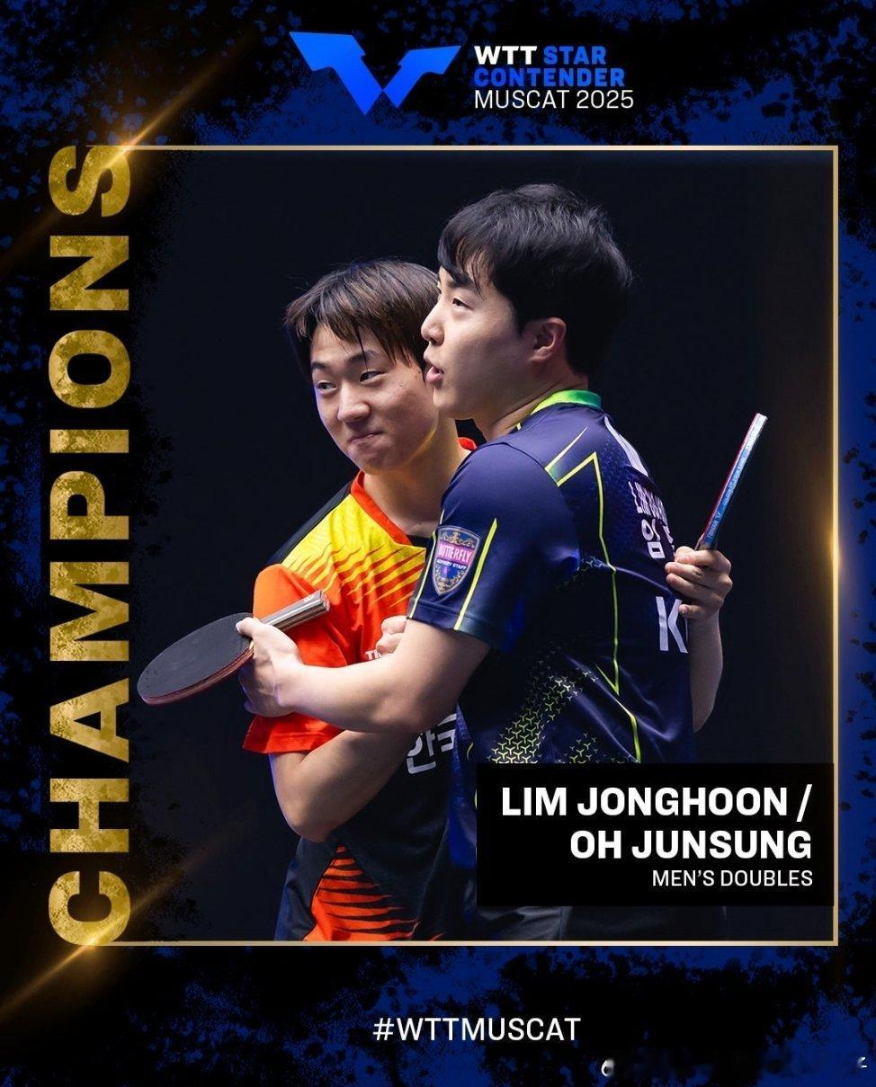2025WTT马斯喀特球星挑战赛冠军汇总:男单冠军🏆:菲利克斯勒布伦🇫🇷女单冠军🏆:木原美悠🇯🇵男双冠军🏆:林钟勋吴晙诚🇰🇷女双冠军🏆:大藤沙月横井咲樱🇯🇵混双冠军🏆:英田理志佐藤瞳🇯🇵