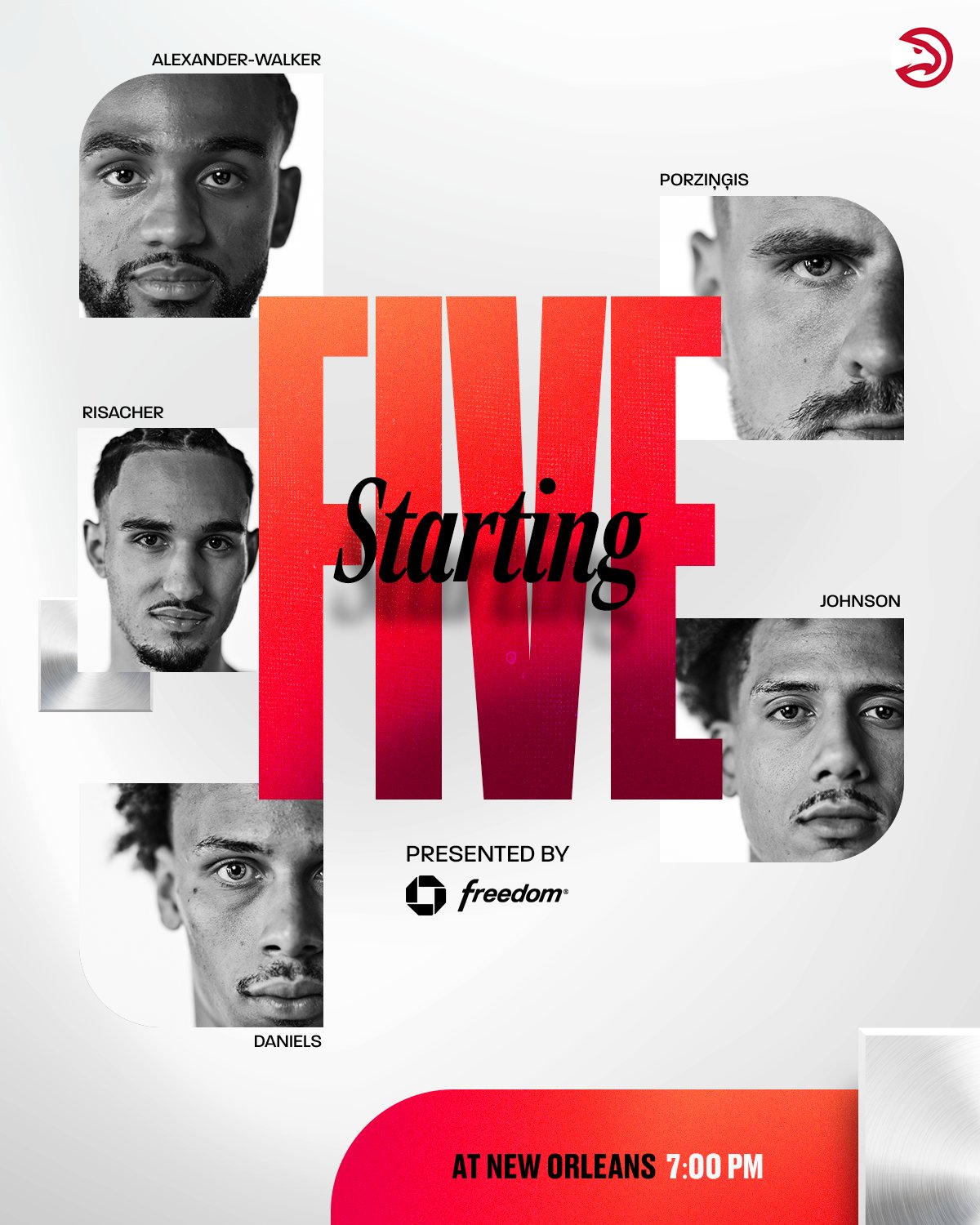 赛前,老鹰社媒发布本场比赛的首发球员:克里斯塔普斯-波尔津吉斯、杰伦-约翰逊、亚历山大-沃克、扎卡里-里萨谢、戴森-丹尼尔斯。