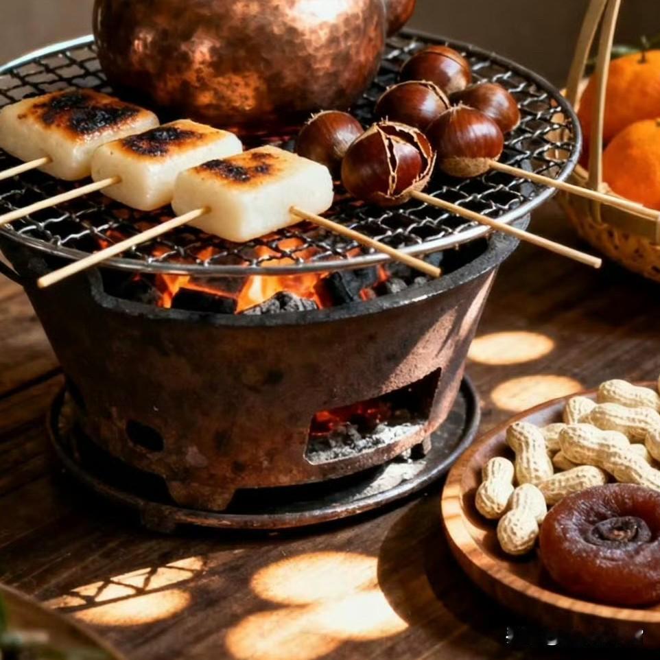 今日的家常小聚,是围炉上咕嘟的热茶,是烤得暖乎乎的年糕和栗子,还有满桌的干果、水