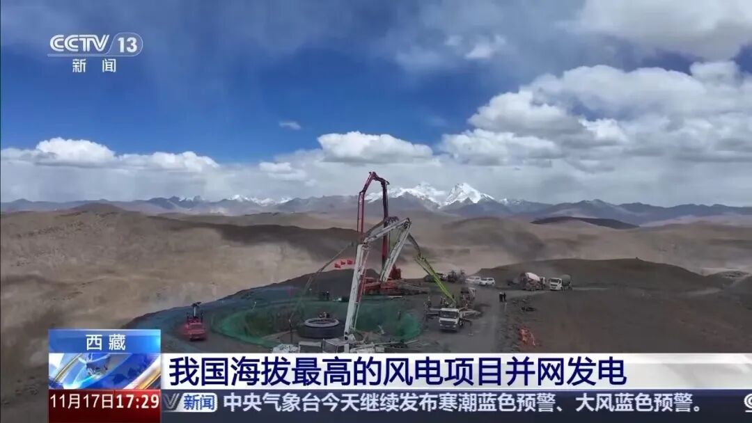 11月17日,华电琼结风电项目正式并网发电。该项目机位点最高海拔达5370米,是目前全球在运海拔最高的风电项目,也是西藏自治区单机容量最大的风电项目。据估算,项目投运后,每年输送的清洁电能可满足约12万户家庭用电需求,相当于年均减少二氧化碳排放12.87万吨。