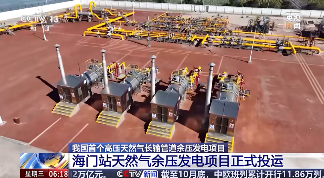 11月19日,国家管网集团海门站天然气余压发电项目在江苏南通正式投入运营。这是我国首个高压天然气长输管道余压发电项目,实现了在高压天然气输送过程中对余压资源的高效利用,标志着我国在长输管道能源综合利用领域取得突破。