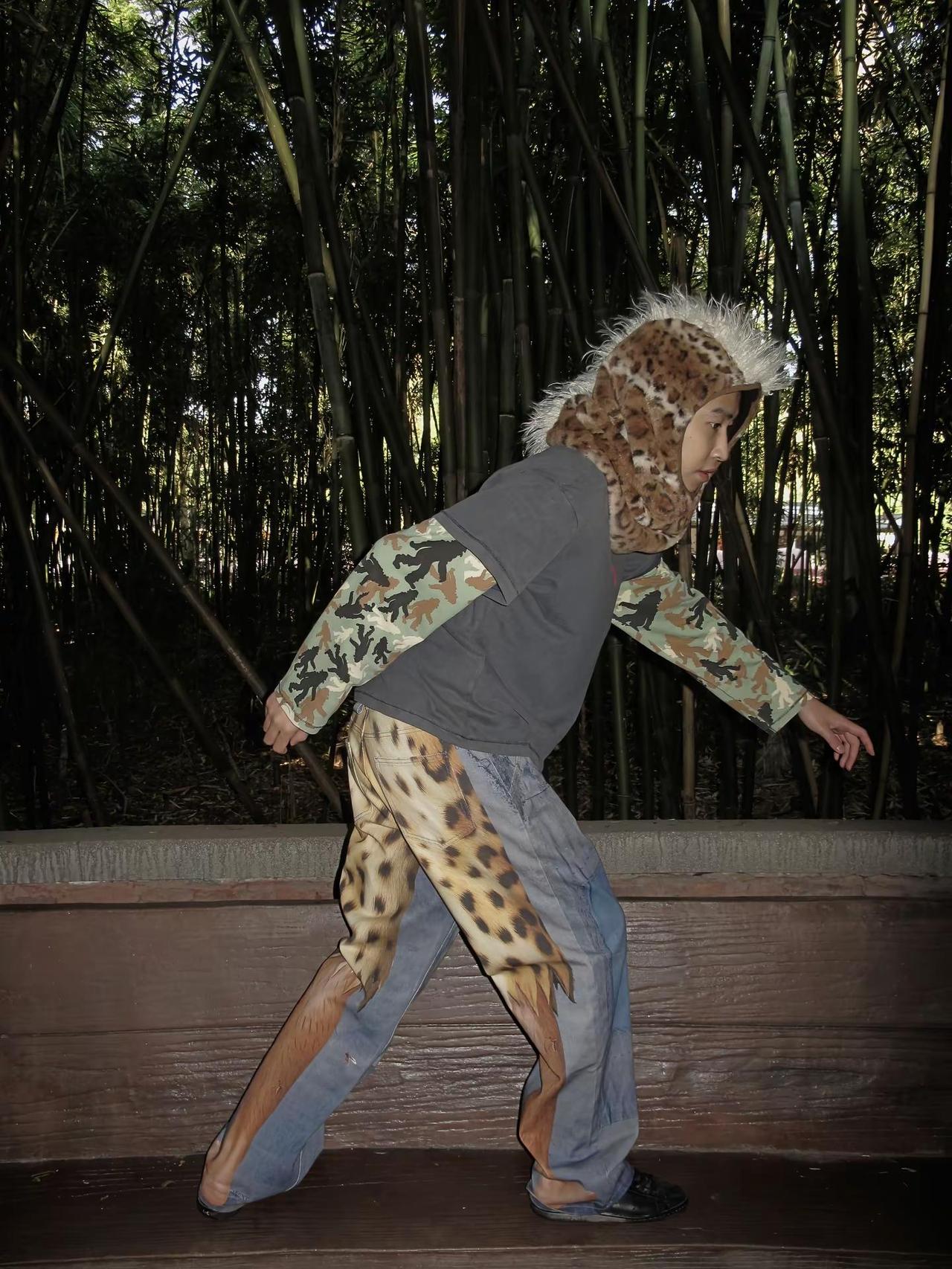 野。做了条我觉得很好玩的印花裤,尝试换种方式玩一下豹纹元素。这次秋冬还做了个属于阿野自己的迷彩,当然冬天也少不了一个温暖的头套。总之有在慢慢尝试,嘻嘻,玩的开心也很重要🦍🦍🦍🦍mentalfree 野人 露出 豹纹