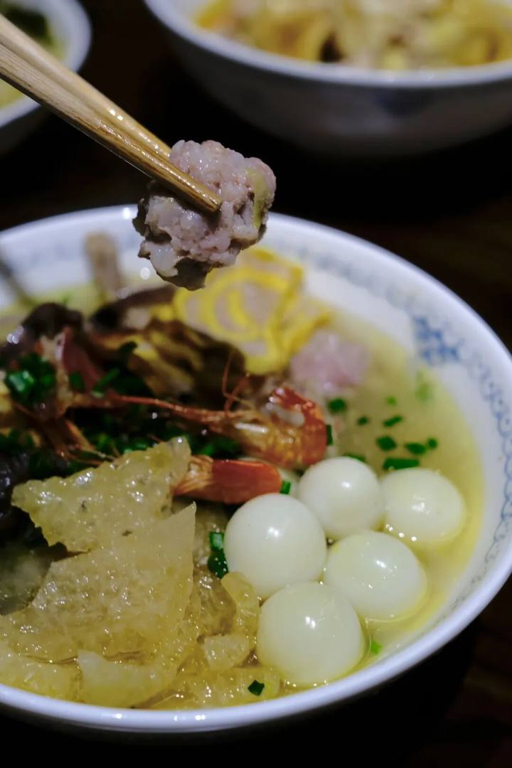 肉圆子是土猪肉刀剁的,有肉粒,有肉香。