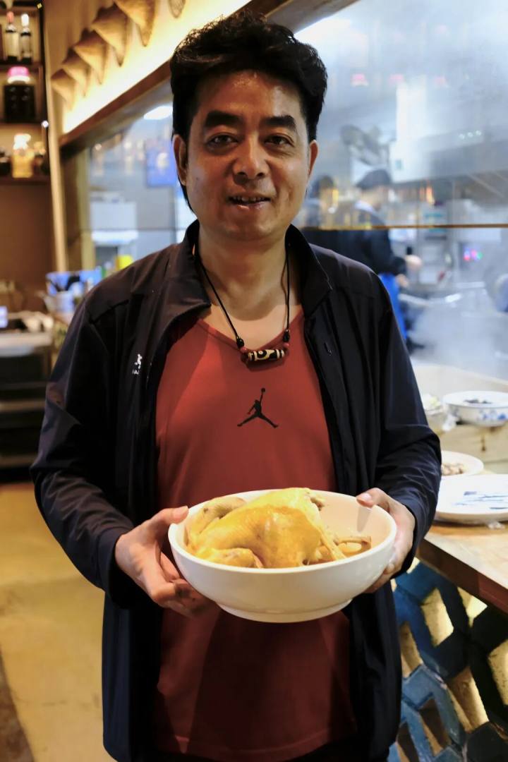 “我们主打鸡跟鸭,要不要来一个,这个鸡我专门跑到进化去搞来的。”