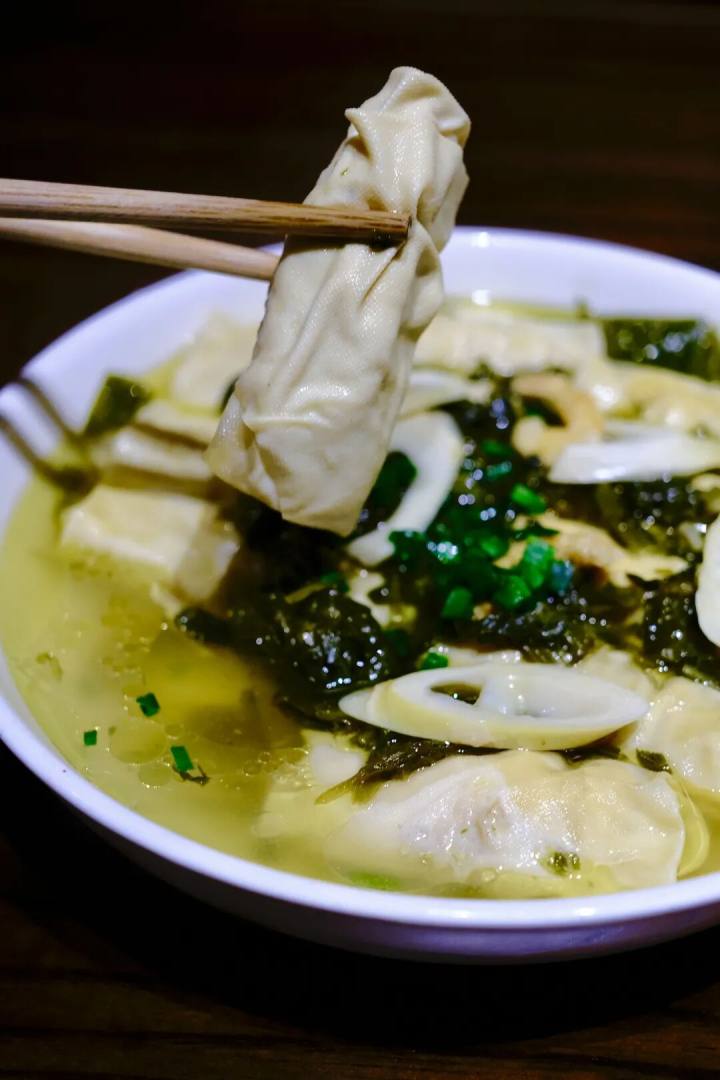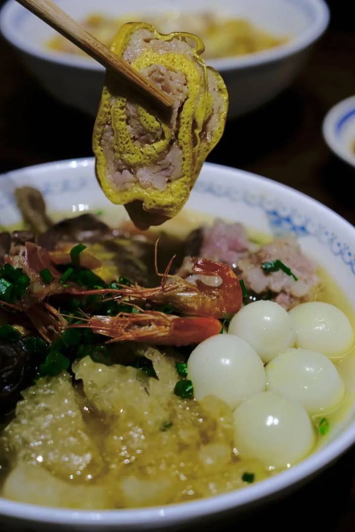 千张包也是自家厨师包,肉跟倒笃菜是九堡江边农户那里收来的,放几片春笋蒸蒸,蒸出来汤面有大大小小的油花,聚散流光。